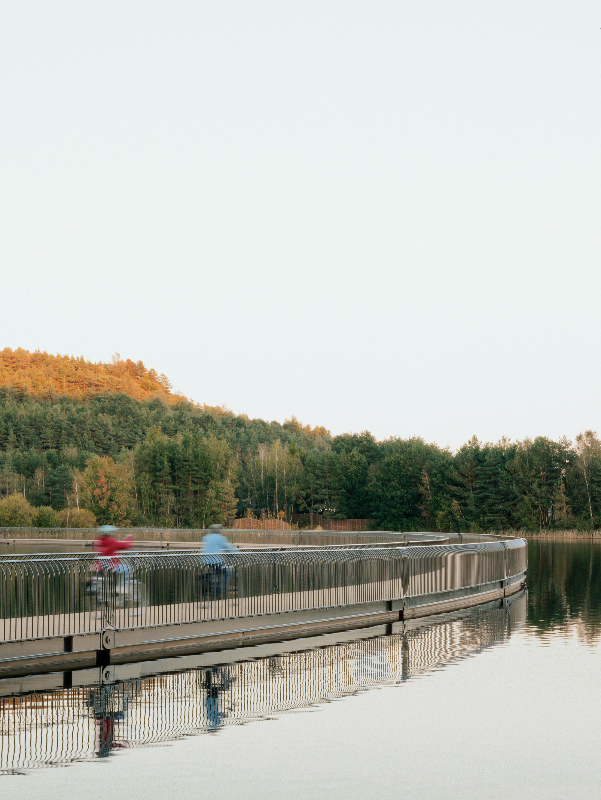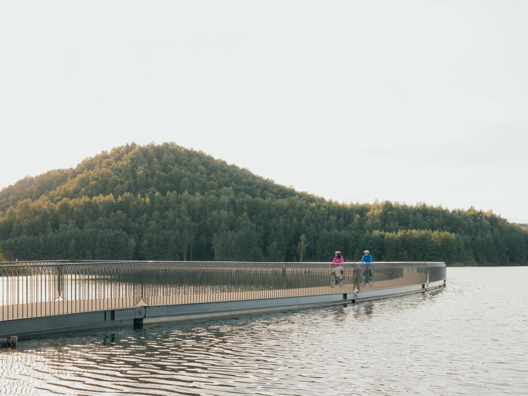 這座浮筒的落成,不僅是在地景上增添一道風景,更是在林堡省聞名遐邇的自行車道網絡上,創建了一個全新的關鍵節點。林堡省作為自行車運動的天堂,擁有極其完善的路網系統,而這座橋樑的加入,無疑是錦上添花,成為這張網絡中不可或缺的一環,提供了一種前所未有的騎行經驗。此外,這條動線也將被整合進霍格肯彭國家公園(Hoge Kempen National Park)的健行步道系統。以豐富遊客體驗選擇,深化區域觀光的整體價值,讓歷史、自然與休閒活動在此圓滿結合。