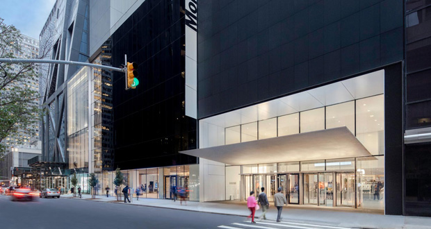 53街入口的頂棚是一架薄層42英吋的飛機,重95500磅,像切穿玻璃幕牆一樣漂浮在正門上方。頂棚由鋼板和暗肋組成,懸掛在鋼條上。頂棚懸臂26英吋超出建築物外牆,一直延伸到人行道上,標誌著來訪者的主要入口。