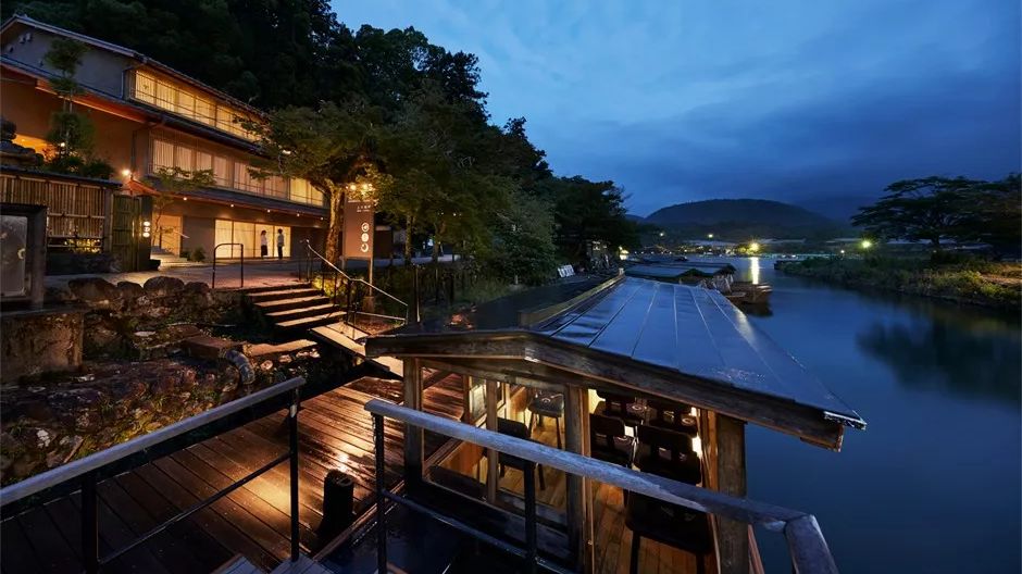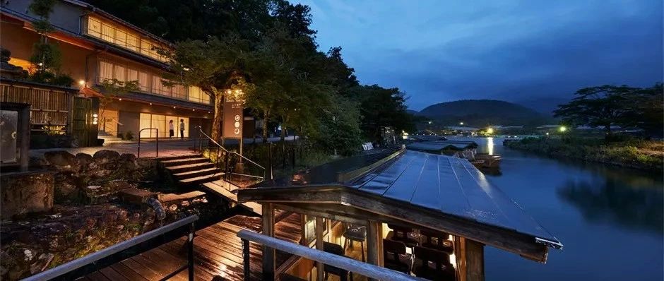 在這裡典雅的日式建築兼具京都傳統文化精粹,彷彿回到了古時的嵐山。春天窗外是爛漫的櫻花,秋天則是遍山層染的紅楓,水色青碧的保津川溪聲潺潺,偶爾會見到擺渡的船伕立在船頭衝你招手。好像重現了百年前日本貴族遠離世俗的奢華閒適遊玩生活。