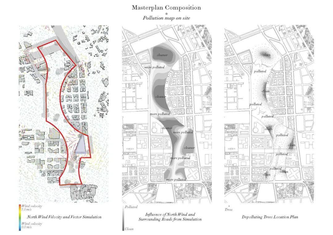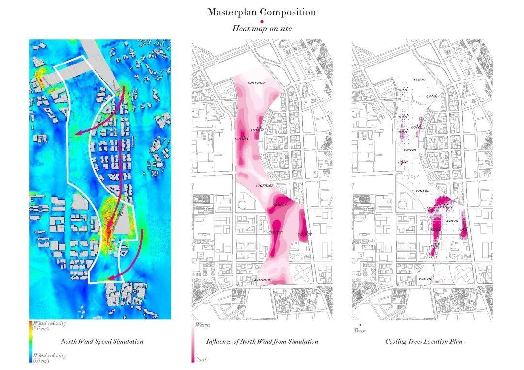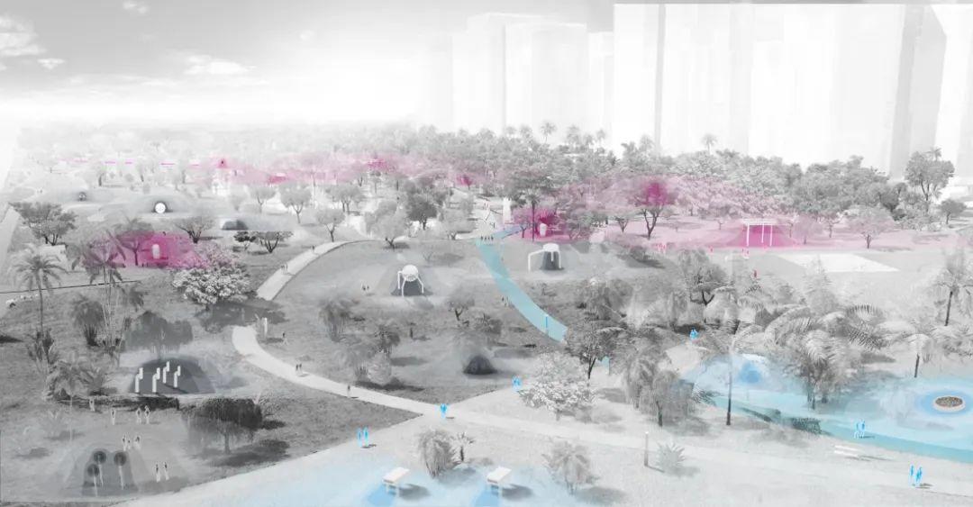 Philippe Rahm 與設計團隊提出的公園設計提案完全依據氣象規則。台中是一個炎熱又潮濕的城市,且跟其他城市一樣受空氣污染問題困擾。要怎麼創造一個怡人的戶外空間,使得人們不再傾向於選擇有空調、感覺更舒適的購物商場?Philippe Rahm 運用了前述的手段和方法,繪製各種流場圖,畫出最涼快的地方。座落在北風吹過的地區相對而言比較涼爽,設計團隊藉由種植樹來引導靠近地面的風的走向,放大風的降溫效應。樹本身還是天然的避暑降溫裝置,能提供蔭蔽與蒸發吸熱,從熱傳導和太陽輻射兩方面雙管齊下,緩和悶熱。一定程度上,風的走向定義了該公園的形態。同理,濕度和空氣污染物也是藉由繪製流場圖,分析來源,再製定解決提案。空氣污染物大多來自於路上的汽車,根據其來源方位種植樹木。樹葉能吸收微顆粒物與廢氣,粗壯的樹幹則能阻隔噪音。