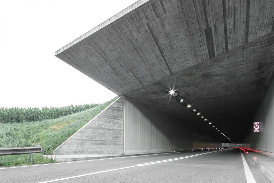 新的混凝土結構是由正在建造中的64公里長的Brenner Base隧道施工現場獲得的骨料製成。隔音牆採用落葉松木製成,通風筒則採用了耐候鋼,它們與裸露的混凝土結構共同構成了本次作品的核心要素,將景觀、基礎設施和交通樞紐的多重功能結合在一起,指示出地上層和地下層的交匯點,在融入Bressanone城市景觀的同時也定義出一場獨特而短促的行駛體驗。