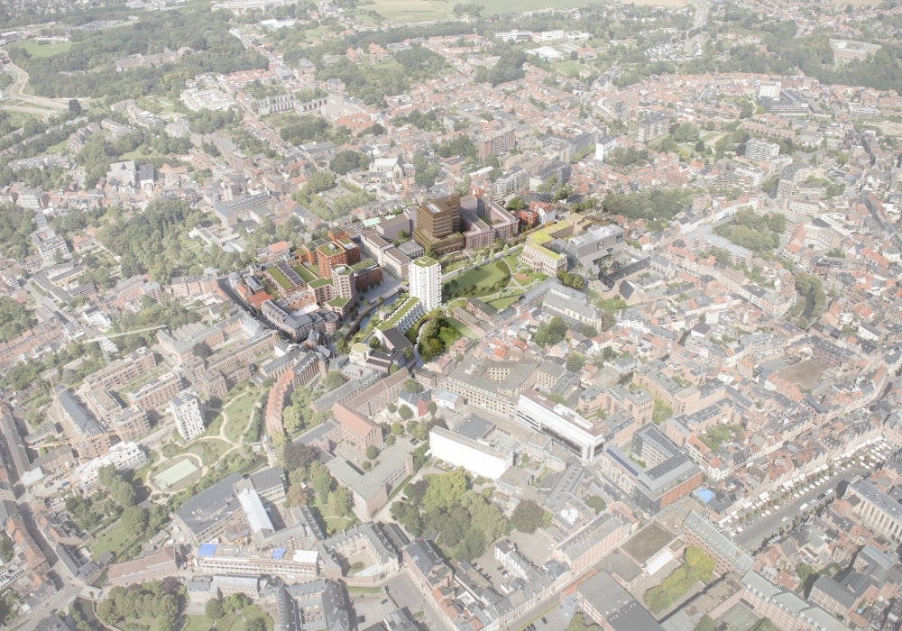 David Chipperfield Architects 的資深建築師 Julien Gouiric 表示,設計團隊面臨兩大挑戰:如何將三種不同的住宅類型組構到一個社區量體內,並且讓建築能夠與周邊的特殊環境相互契合。為了解決這些問題,設計團隊選擇使用灰色磚牆的外觀設計,先以顏色及形式整合了建築風格,還突出了每個單元的立體感與細緻度。這個建築群是魯汶市一項大規模都市更新計劃的核心部分,目的是將過去曾做為醫院使用的園區重新與周圍的城市紋理融合。