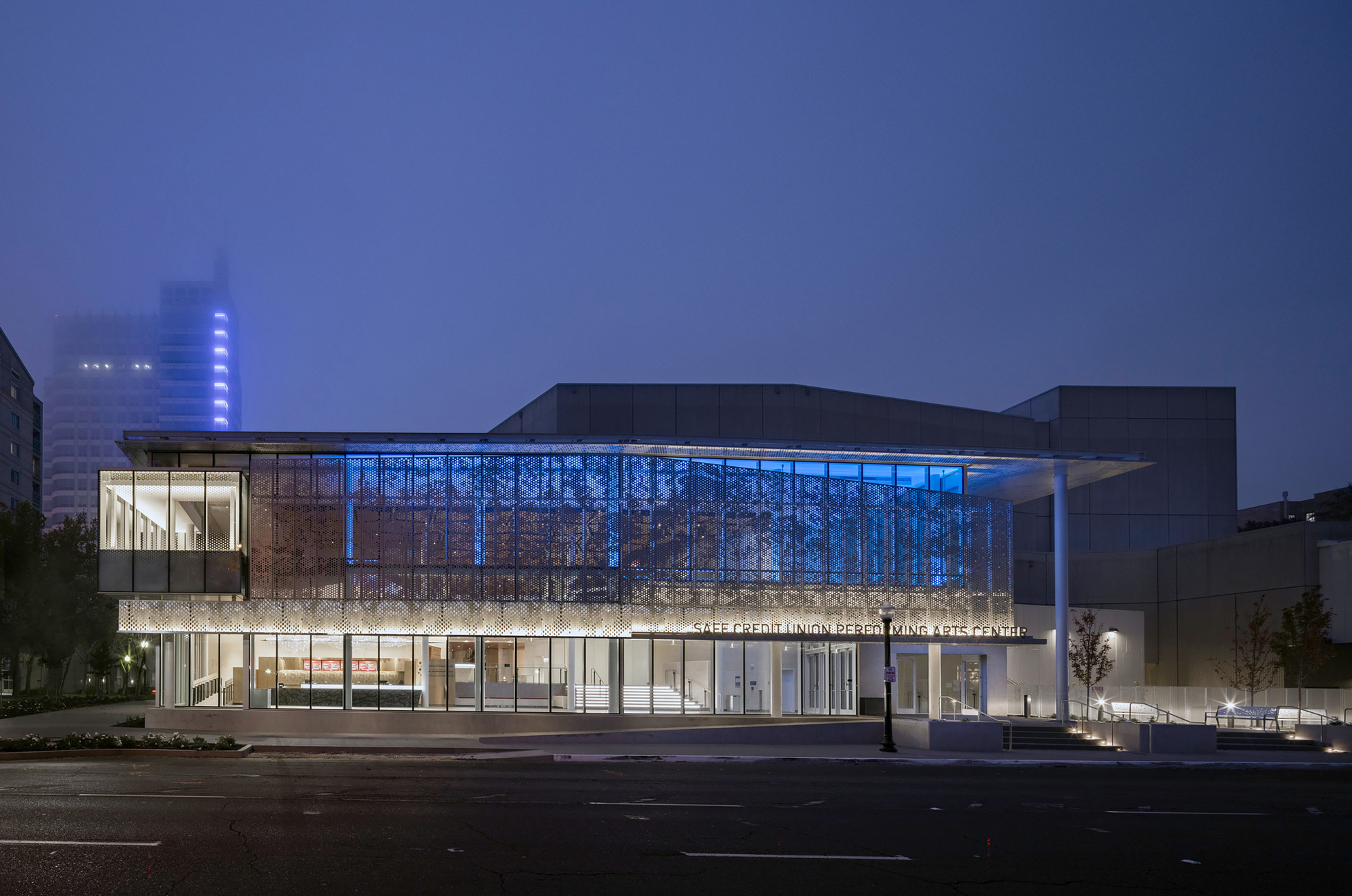 美國薩克拉門托 SAFE Credit Union 表演藝術中心啟用,DLR Group用斑駁光影重塑都市門戶