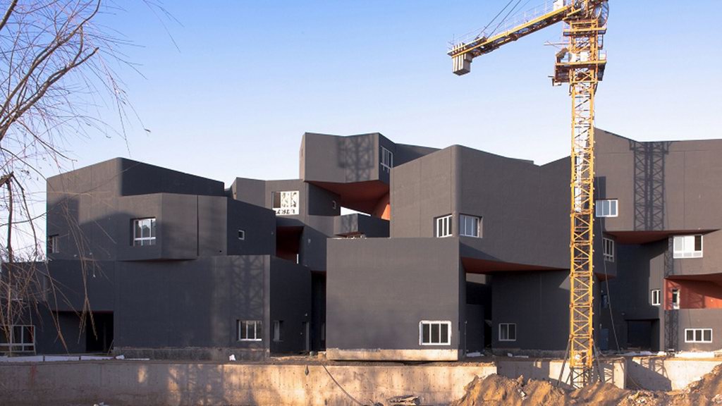 這 座宋莊藝術家住宅+工作室提供了藝術家們居住和工作兩種功能,每一個單元都包含兩種不同的尺度與組合:工作室部分為六米高的簡潔的方盒子,居住空間高三 米,有一系列幾何形空間容納起居廚廁功能,量體高差決定了每個單元的工作和居住功能或在同層聯繫或利用樓梯聯繫,整個建築立面採用壓型鋼板,水平活動平面 則是當地典型的紅磚。