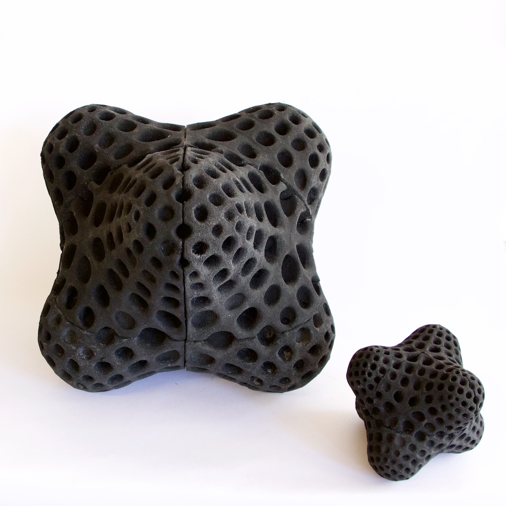 他們製作的第一個3D列印對象「Rubber Pouff(軟質坐墊躺椅)」是由8張塊片粘合在一起形成的。這個作品可以用來作為墊腳器或者軟質矮凳。