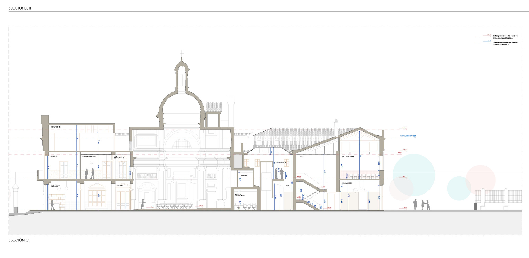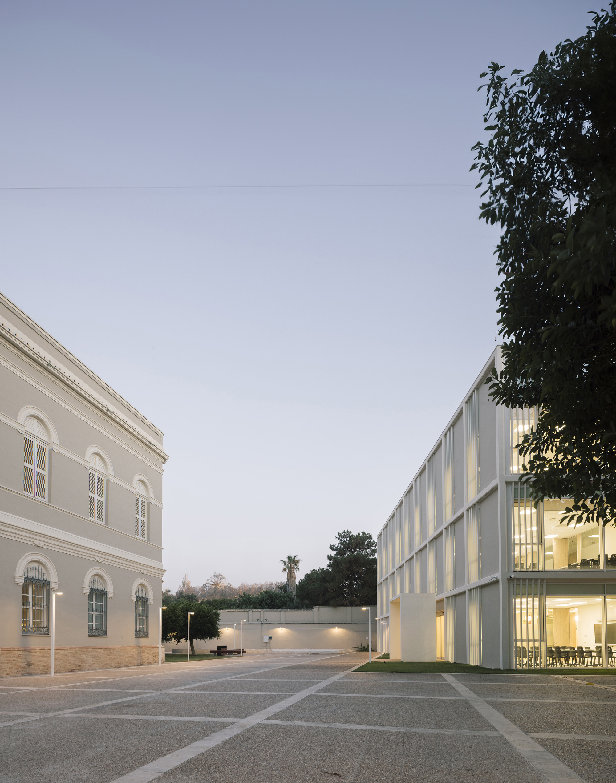 除了修復歷史建築本體,此計畫亦包含在基地西側,增建一座全新的附屬建築。這幢擴建的量體,刻意與既有的建築群保持著和諧的對話。無論在材料的選擇、色彩的調配,乃至於立面的構成節奏上,新建築均對舊建築表示了深刻的尊重。最終,它呈現為一個富有當代感的量體,卻又毫無違和地融入受保護的歷史建築群中,絲毫未損及古蹟的建築完整性。此案已成為瓦倫西亞市中心文化遺產再造的卓越基準。