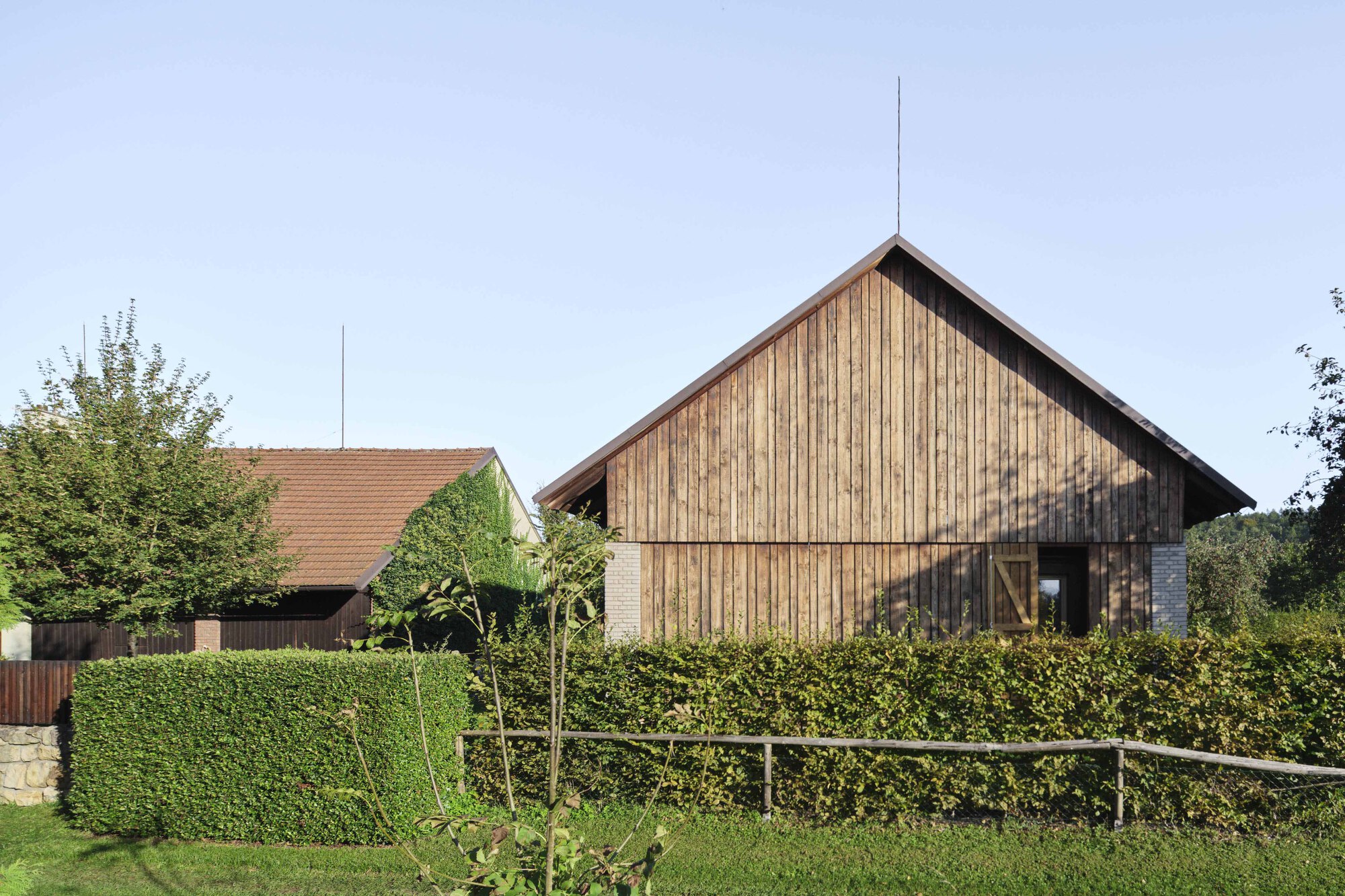 在捷克拉茲涅別洛赫拉德的溫泉鄉間,Facha 建築師事務所將現代量體悄然植入百年穀倉,利用屋中屋概念重新闡釋季節性住居空間