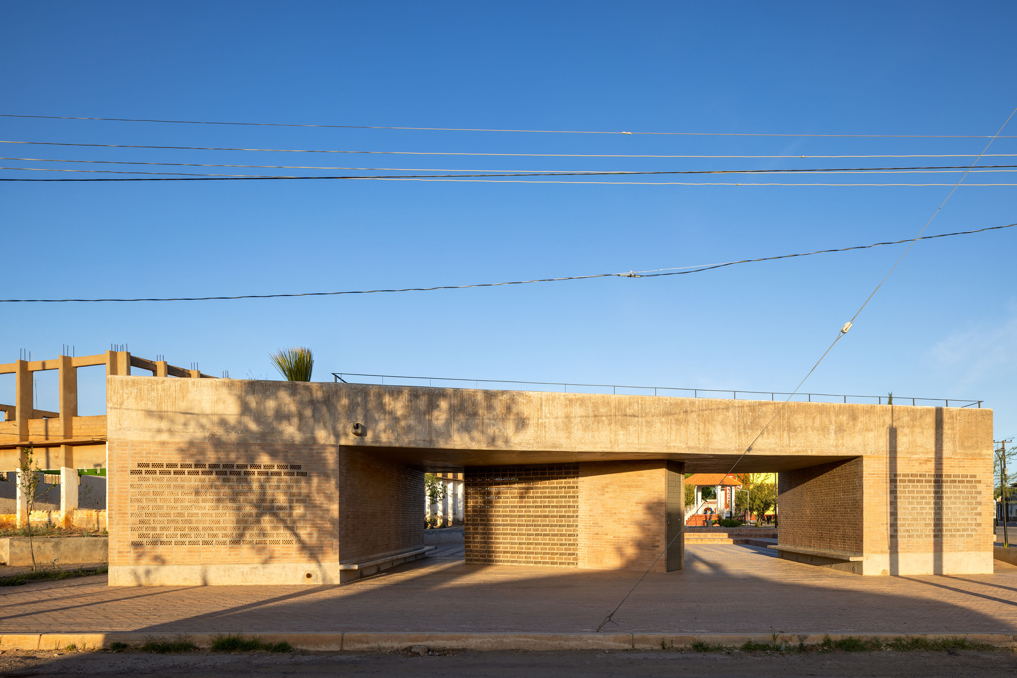enito Juarez Square位於墨西哥納科的中心,周圍為低密度建築和遼闊的自然景觀所環繞。廣場結合當代設計語彙,以磚牆與簡潔結構形成鮮明視覺焦點,成為這座小鎮的社會活動核心