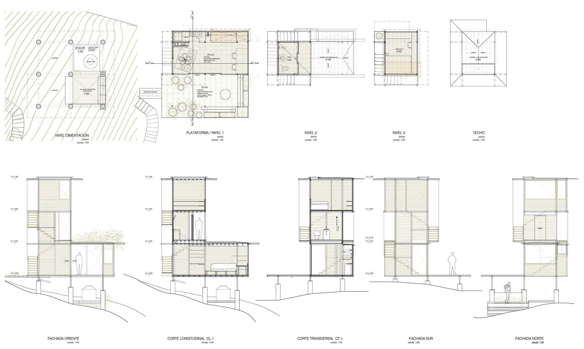 在繁華喧囂的墨西哥城(Ciudad de México)邊緣,一片綠意盎然的陡峭山坡上,隱藏著一座名為「Casa Flotante」的私人住宅。這座由墨西哥在地建築團隊Talleresque精心設計的建築,總樓地板面積僅有87平方米,卻以其獨特的姿態,展現了人類庇護所與自然環境之間最深刻的對話。