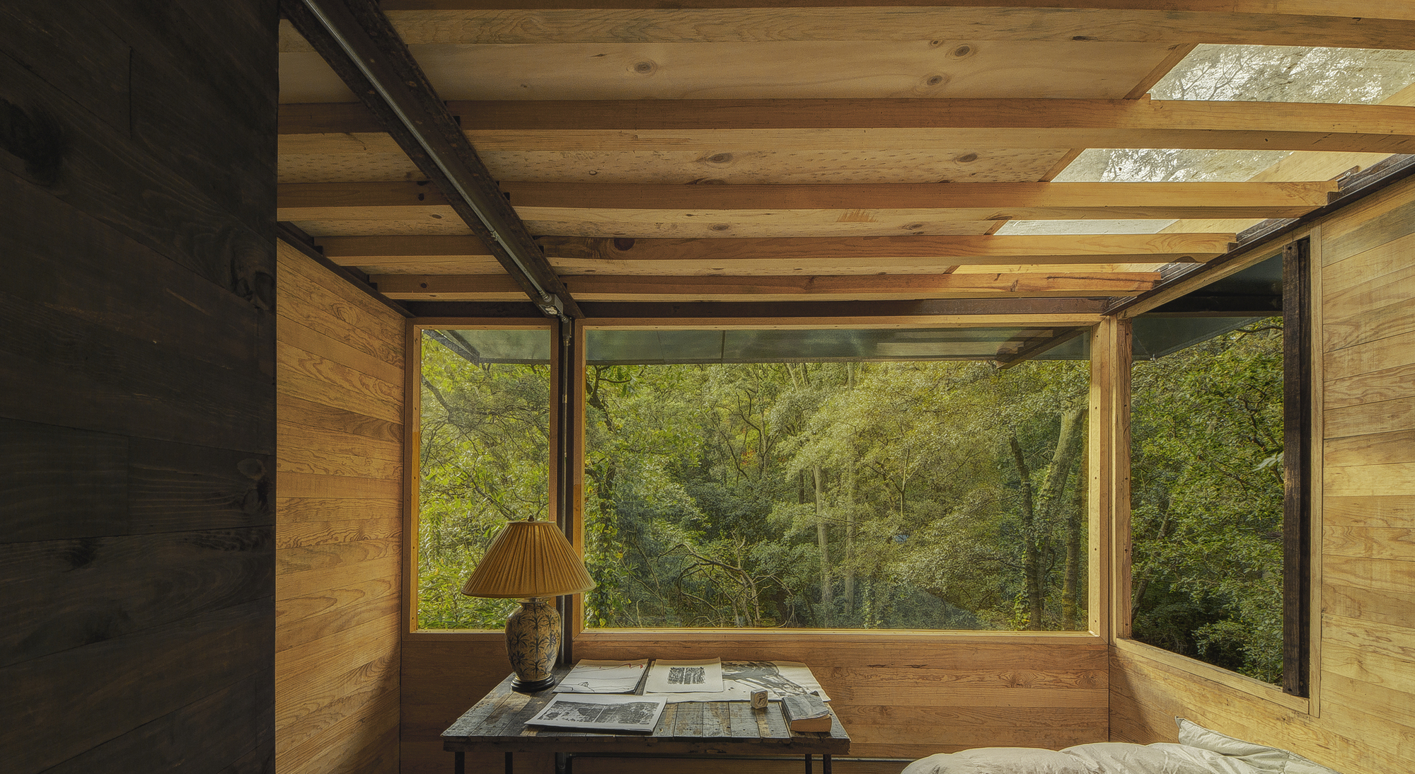 在這個案子中,室內與室外的整合並非只是設計手法的點綴,而是先於任何建材選擇或形式塑造的最高指導原則。這不是一棟強行植入自然的人造物,而是一個渴望被森林擁抱、與樹木共同呼吸的有機生命體。