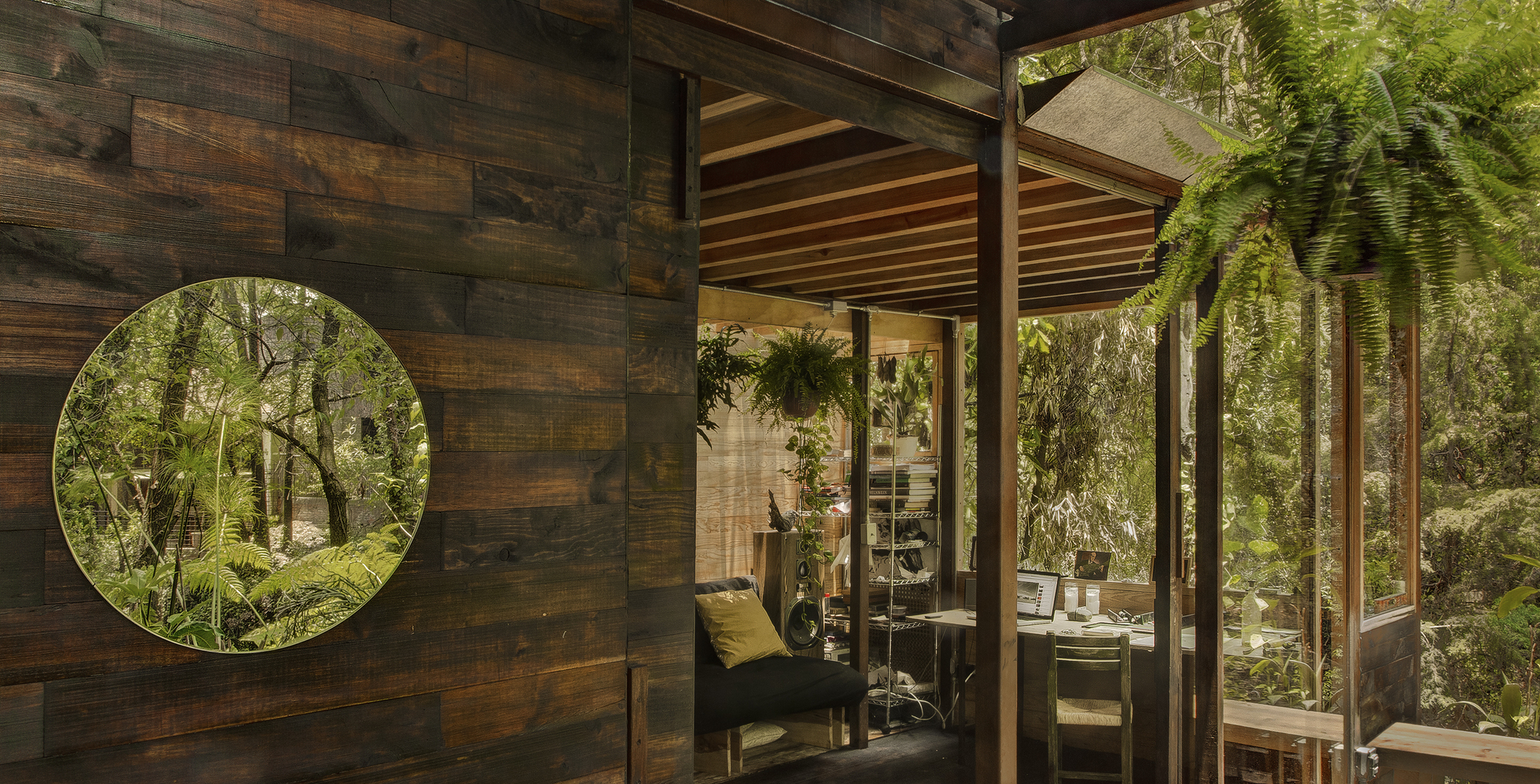 在這裡,建築的態度不是去主宰或征服地景,而是選擇臣服與反映。整座建築就像是一面豎立在森林中的鏡子,將四周的綠意、光影與季節的更迭,毫無保留地映照在自己的立面上,進而消融了自身的龐大體積。Talleresque建築師事務所提出了一種反其道而行的建築風格:用體積和數量的讓步,換取空間的輕盈(lightness)與環境的完美融合。這種捨棄繁複裝飾、回歸純粹的減法哲學,最終孕育出了一種不造作、渾然天成的美感,讓這座小屋,展現出超越尺度的空間張力。