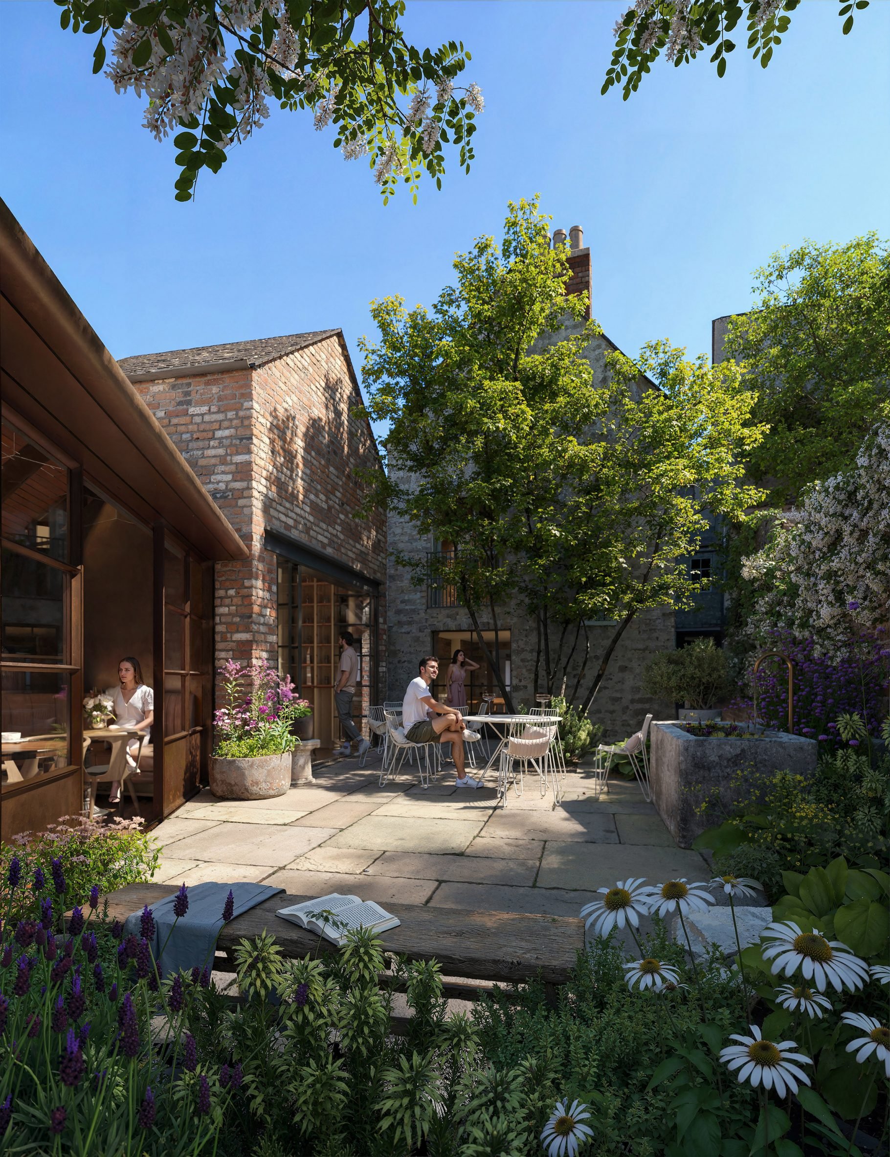整個計畫的最後一塊拼圖,將是一個全面更新的庭園景觀。其中,一條具有歷史意義的通道將被重新修復,它將扮演著關鍵的連結角色,讓酒館與新設的咖啡館,能產生更為流暢的互動,共同圍塑出一個充滿活-力與魅力的公共庭院。