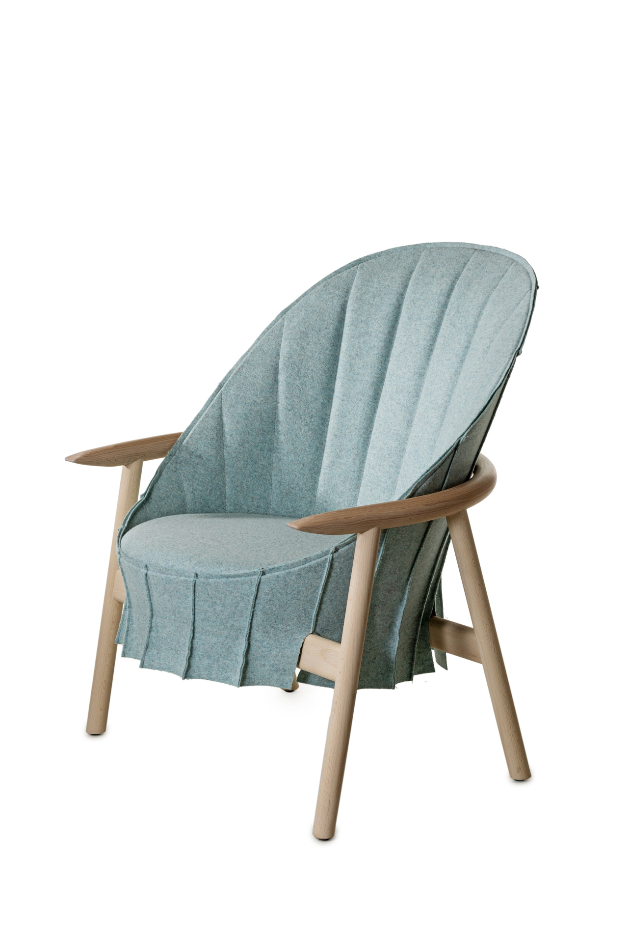 隈研吾使用瑞典的再生毛氈作為椅背的結構材,展現能包裹身體的柔軟觸感,並著重於『ひだ』的細膩感受