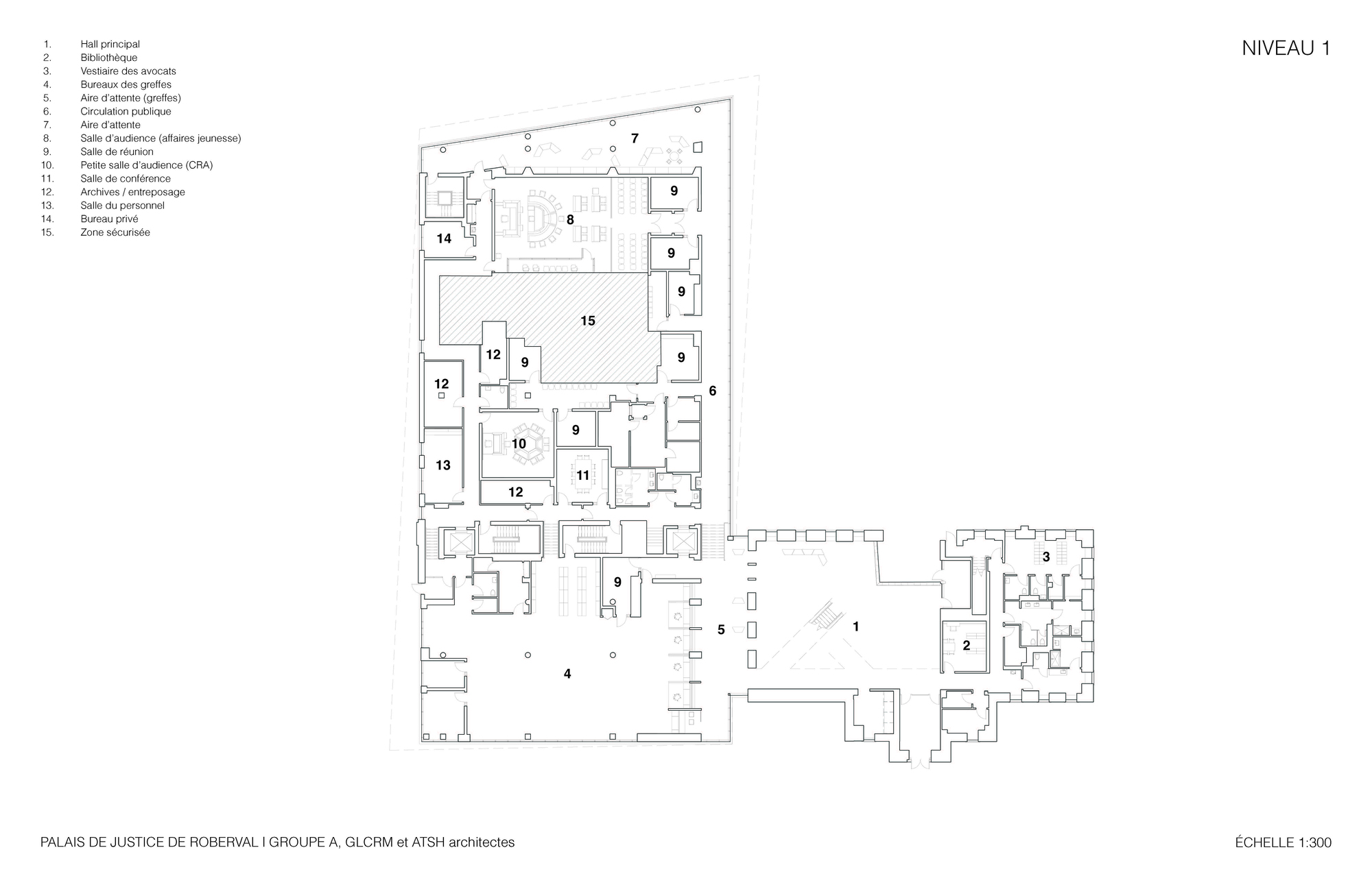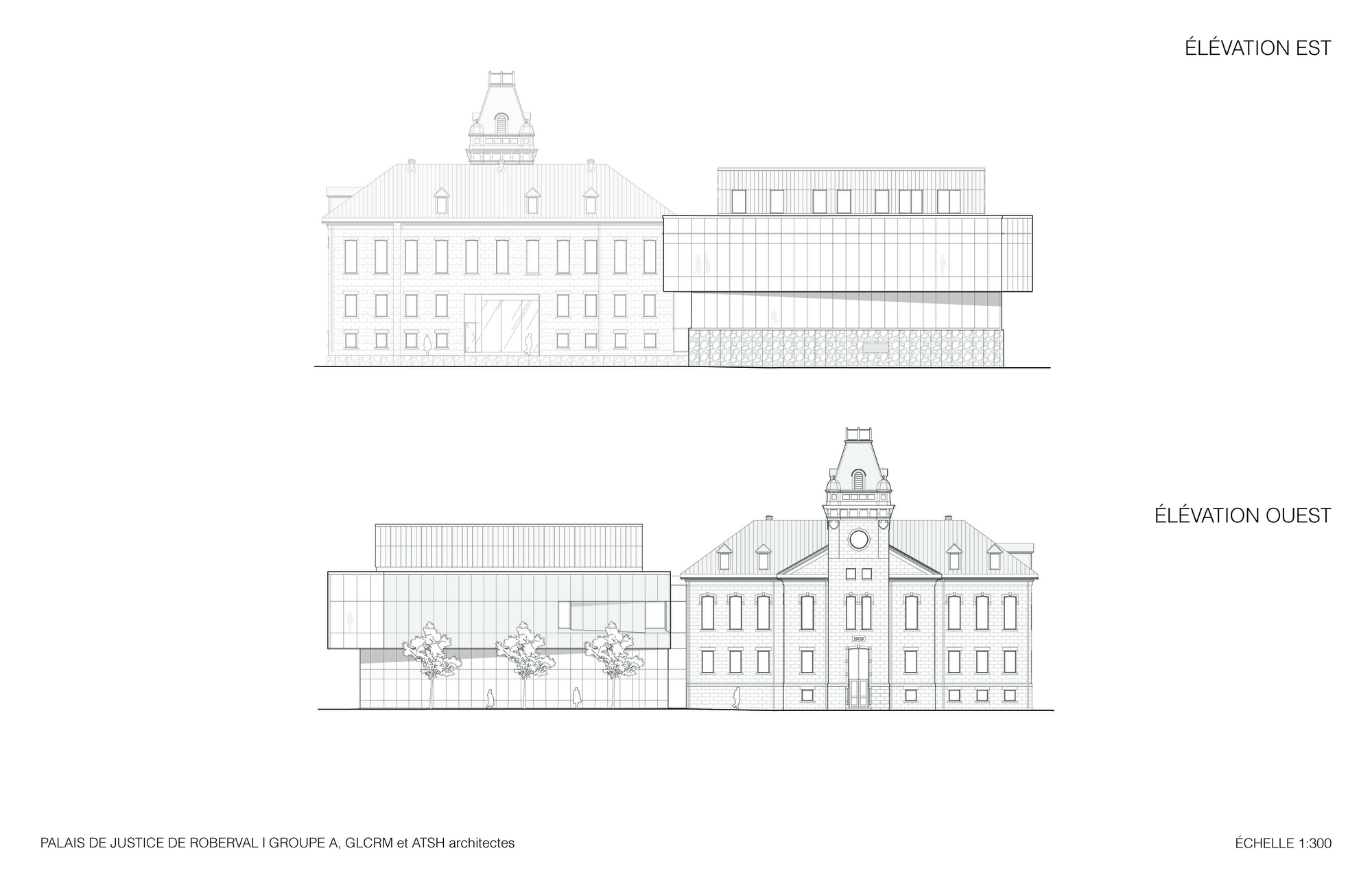 為了解決複雜的空間需求與安全考量,Groupe A 採取了極為清晰的量體組織策略,在視覺與實體上明確劃分了經過精心修復的歷史遺產與充滿現代感的增建部分。新舊分明的佈局,不僅保留了原有建築的歷史韻味與建築完整性,更有效解決了現代法院必須嚴格分離公眾、法官與嫌犯動線的維安難題。