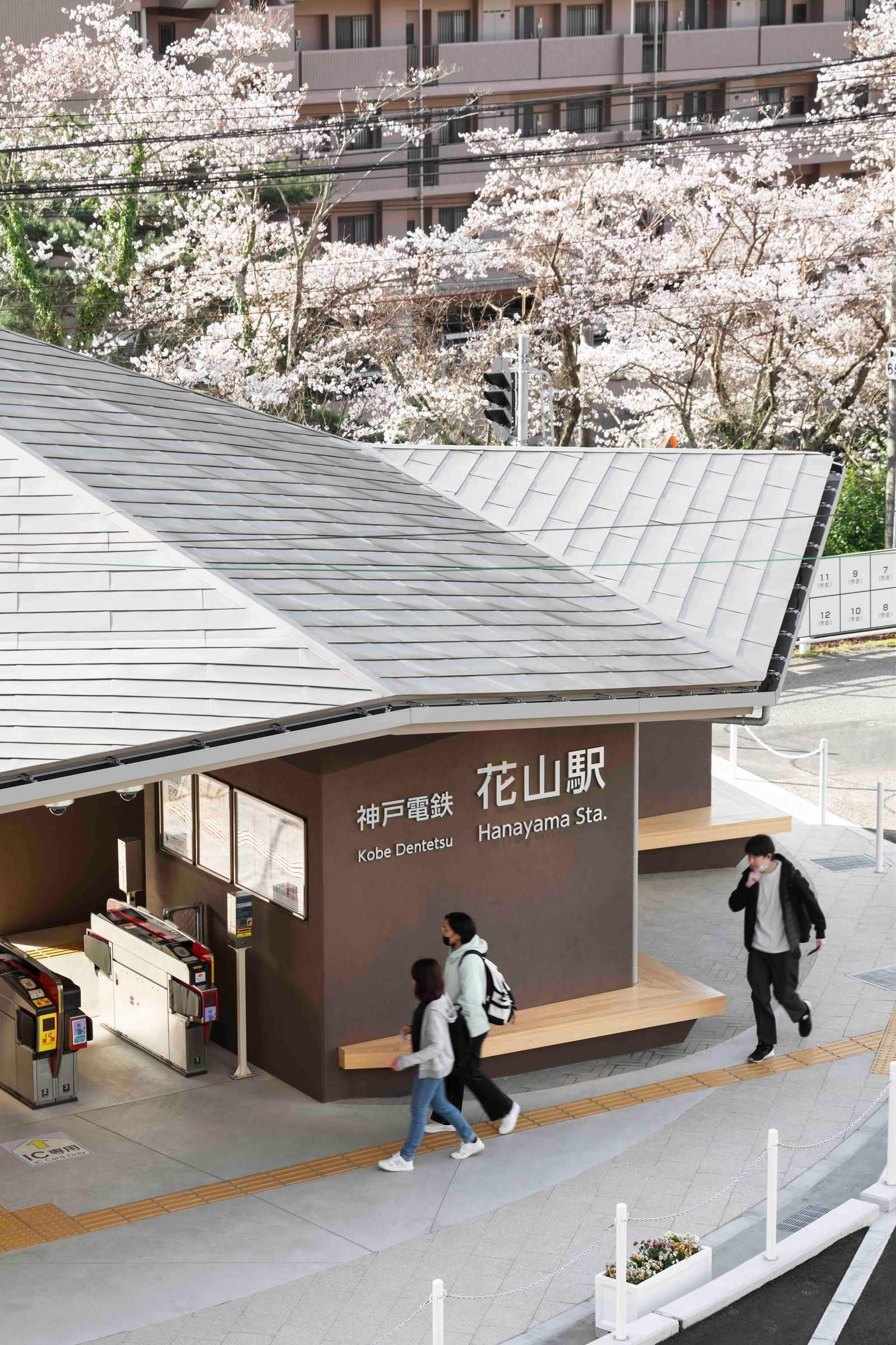 大型商業設施向郊區繞道轉移,導致車站前商店街空洞化,加上汽車社會的普及,使得鐵路利用率逐年下滑。在這樣的背景下,神戶電鐵與設計團隊ICHIBANSEN攜手合作,透過深度的田野調查與討論,重新審視鐵道與沿線社區的未來,最終促成了花山駅(Hanayama Station)新站舍重建計畫的啟動,試圖以建築作為觸媒,為這座老化的城鎮注入新血。