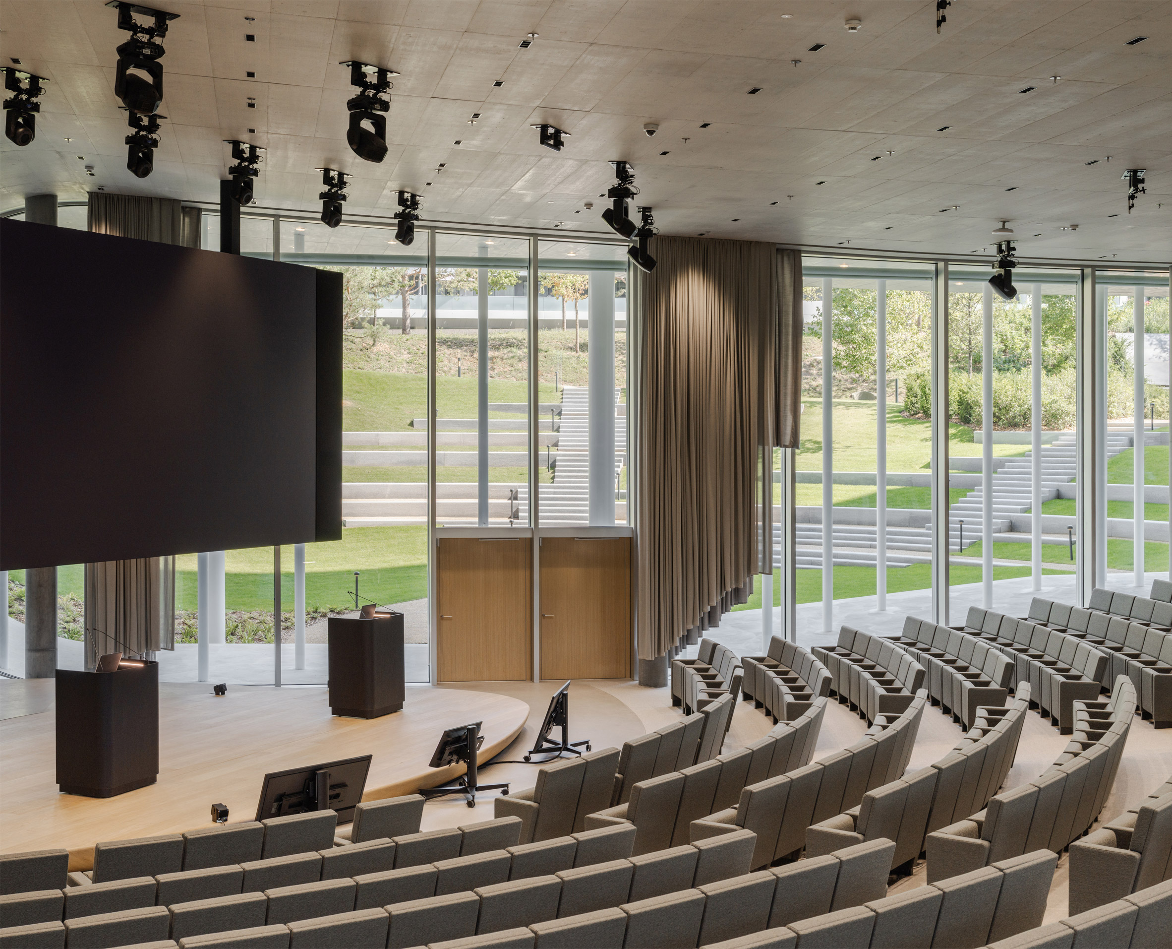 此案在設計之初,便以取得英國建築研究院環境評估方法(BREEAM)的最高等級「傑出級」認證為目標。儘管結構上使用了高碳排的混凝土,建築師仍在基礎中採用回收水泥,並大量使用木材與在地採購的建材。最核心的綠色科技,是一套名為GeniLac的創新系統,直接抽取日內瓦湖的湖水來為建築進行供暖與冷卻。屋頂上除了有綠化植被,還鋪設了750平方公尺的太陽能板陣列,其永續設計的完整性與前瞻性,不言而喻。
