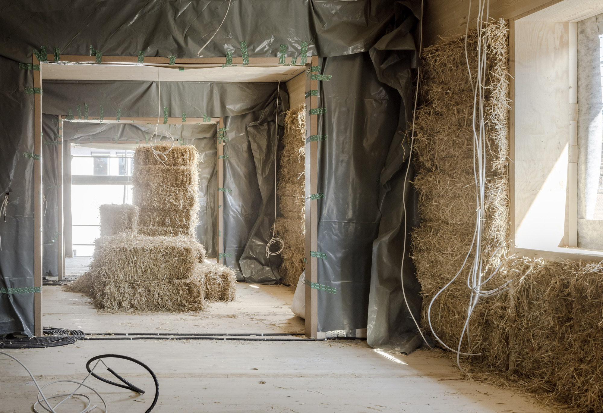 建築材料皆可就地取材,大幅降低運輸碳足跡。更有趣的是,這種「低科技」材料的施工過程極為直觀簡單:工人們僅需將稻草包壓入三十六點五公分的木造框架中,再使用籬笆剪修整多餘部分即可,展現出前工業時代的工藝智慧與現代環保訴求的完美契合。