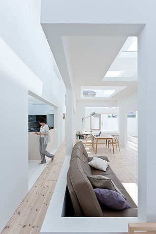 這就是為什麼在這個住宅裡居住就像是在雲團中生活。除了領域的漸層,對於一個獨特明確的界限是無處可尋的。有人可能會說一個理想的建築是讓人即使處在戶外空間也感到像在室內,而在室內時又彷彿置身室外。在一個嵌套結構內,內部又是外部,反之亦然。藤本壯介設計的建築既不是關於空間也不是關於形式,而是單純地表達房子和街道二者之間的豐富性。