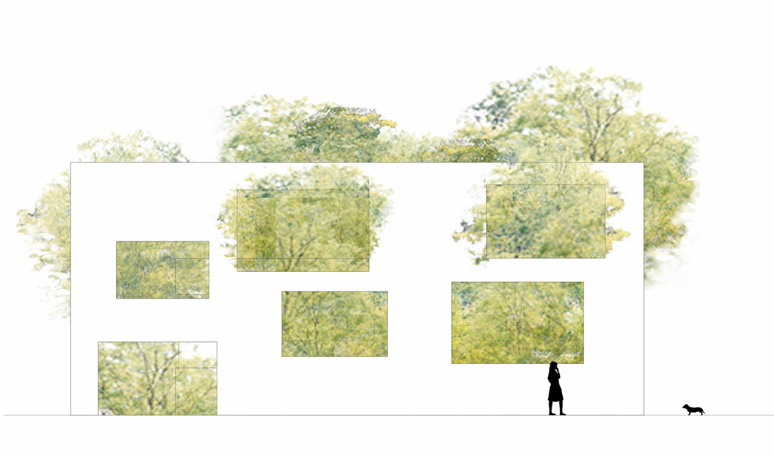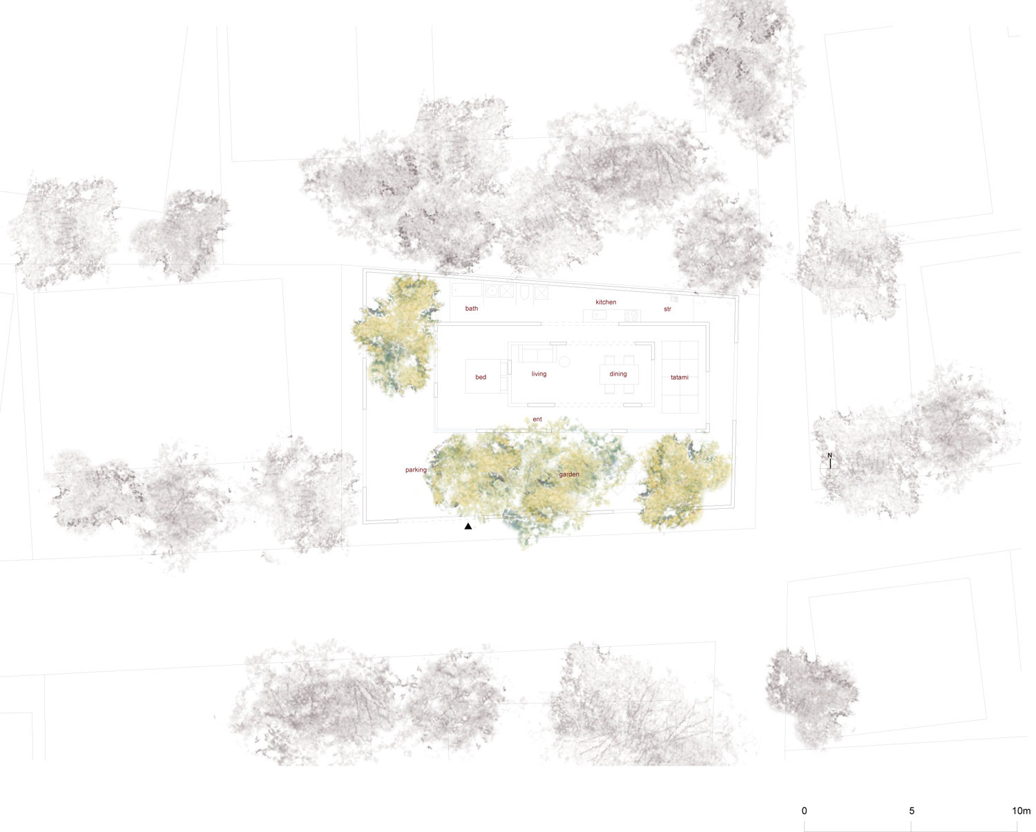 藤本壯介一直對房子與城市街道僅一牆之隔的方式存疑,並思索豐富的場域漸層能否為城市街道與建築之間帶來豐富的距離變化感受;比如:建築內一個空間較靠近街道;另一個空間則有點遠離街道,還有一個離街道很遠的空間,以保證足夠的私密性。