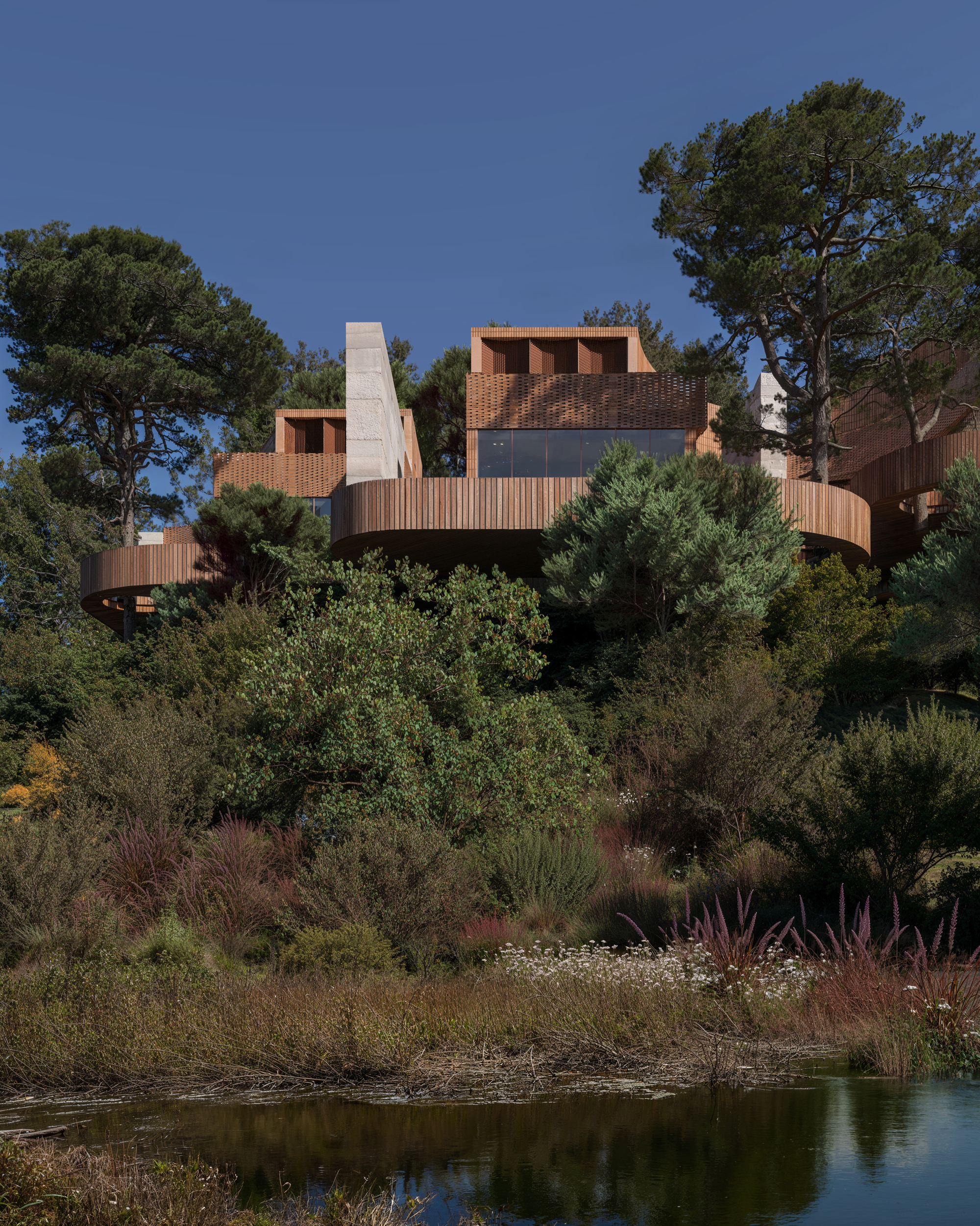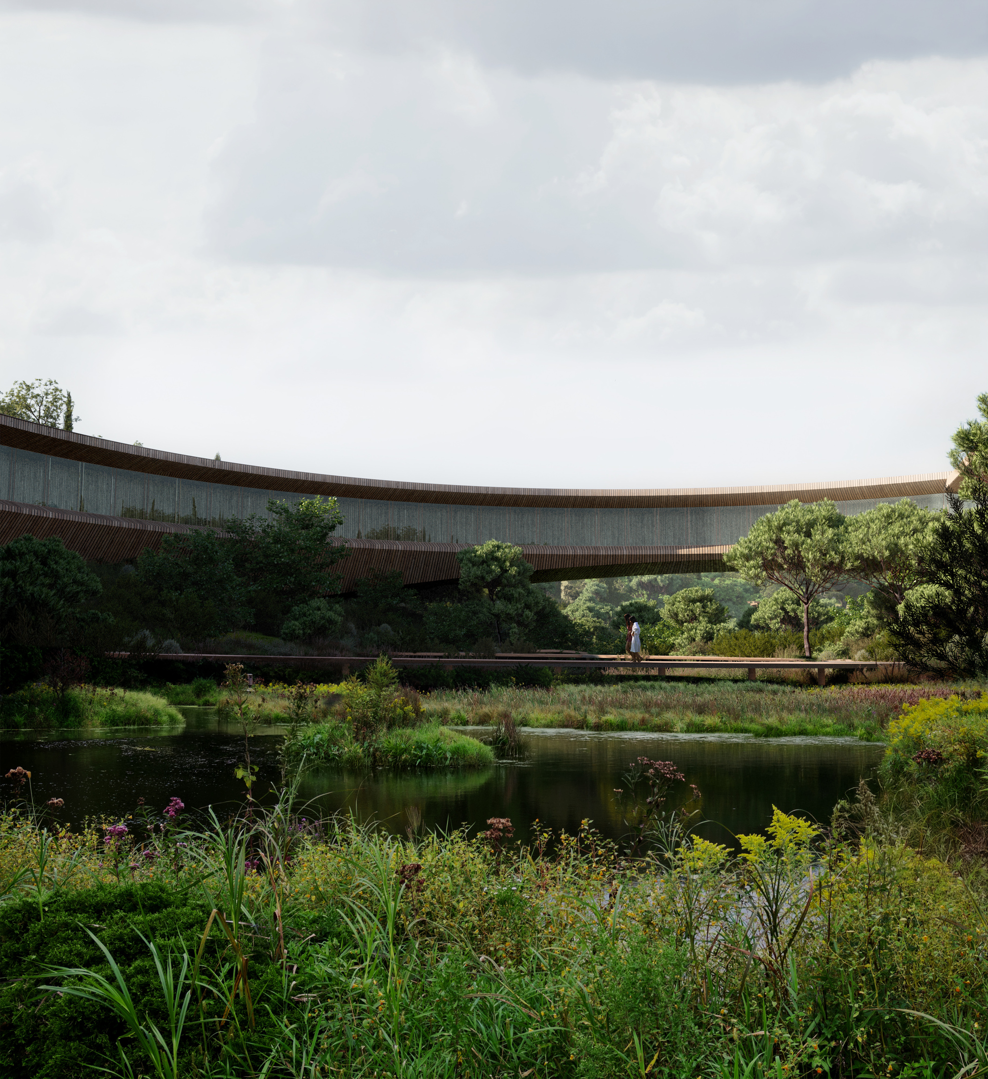 這三座大師級文化場館各自展現了截然不同的設計語彙與空間機能。由挪威Snøhetta設計的「The Ring(環)」,以一個完美的圓形結構優雅地橫跨過當地河流。這個獨特的空間被構想為一個專注於生態學習、植物栽培與日常居民交流的自然中心,周邊更配置了馬廄與分配花園,強力支持環境教育與在地食物系統的發展。