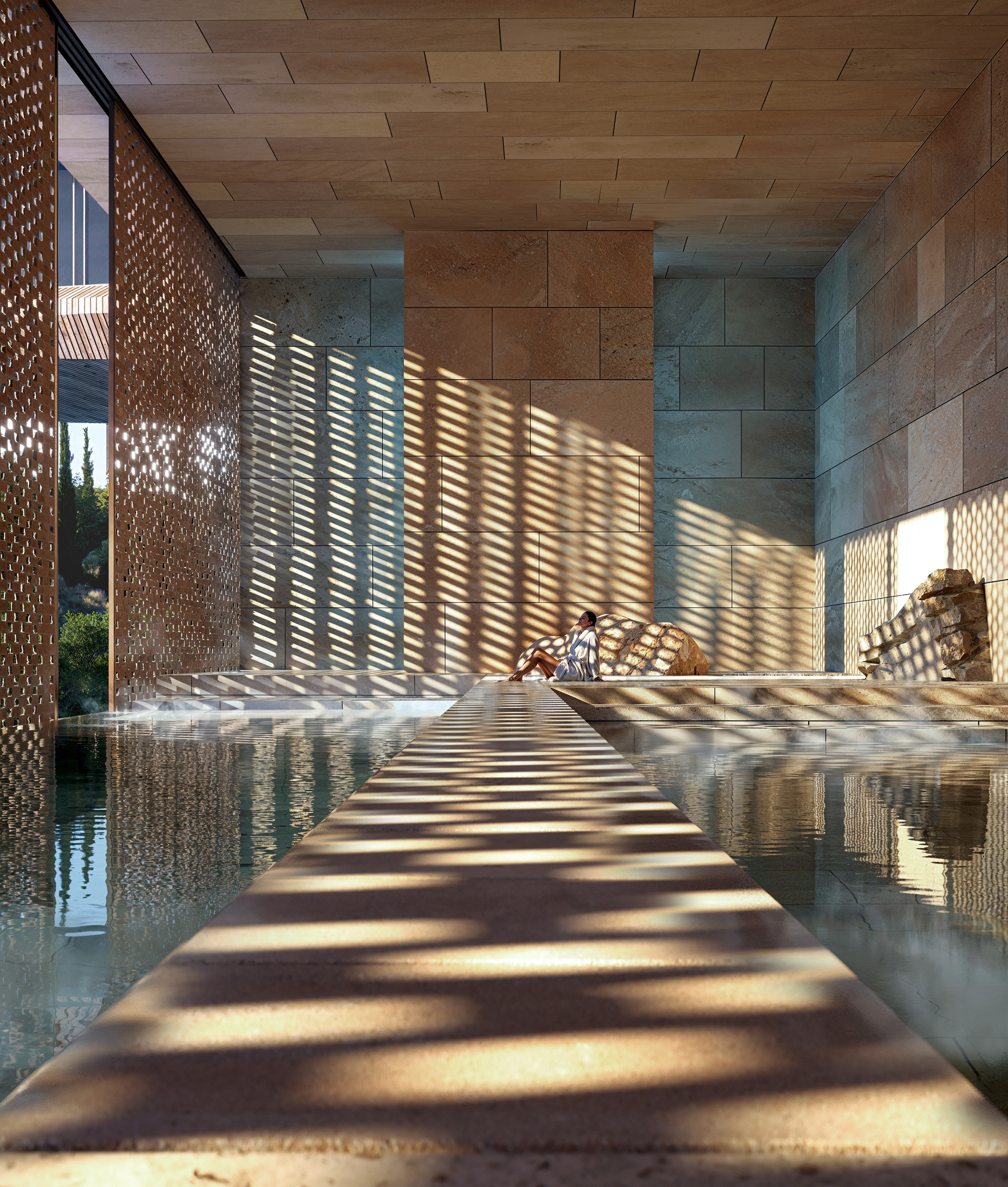 面對日益嚴峻的全球氣候變遷,Ion Riva計畫在永續發展與節能減碳上展現了極高的企圖心。在建材選擇上,專案團隊堅定地優先使用當地開採的天然石材以及交叉層壓木材(cross-laminated timber, CLT)。透過導入模組化的木構造技術,不僅能大幅提升施工效率、縮短工期,更能有效降低建築生命週期中的隱含碳排放。