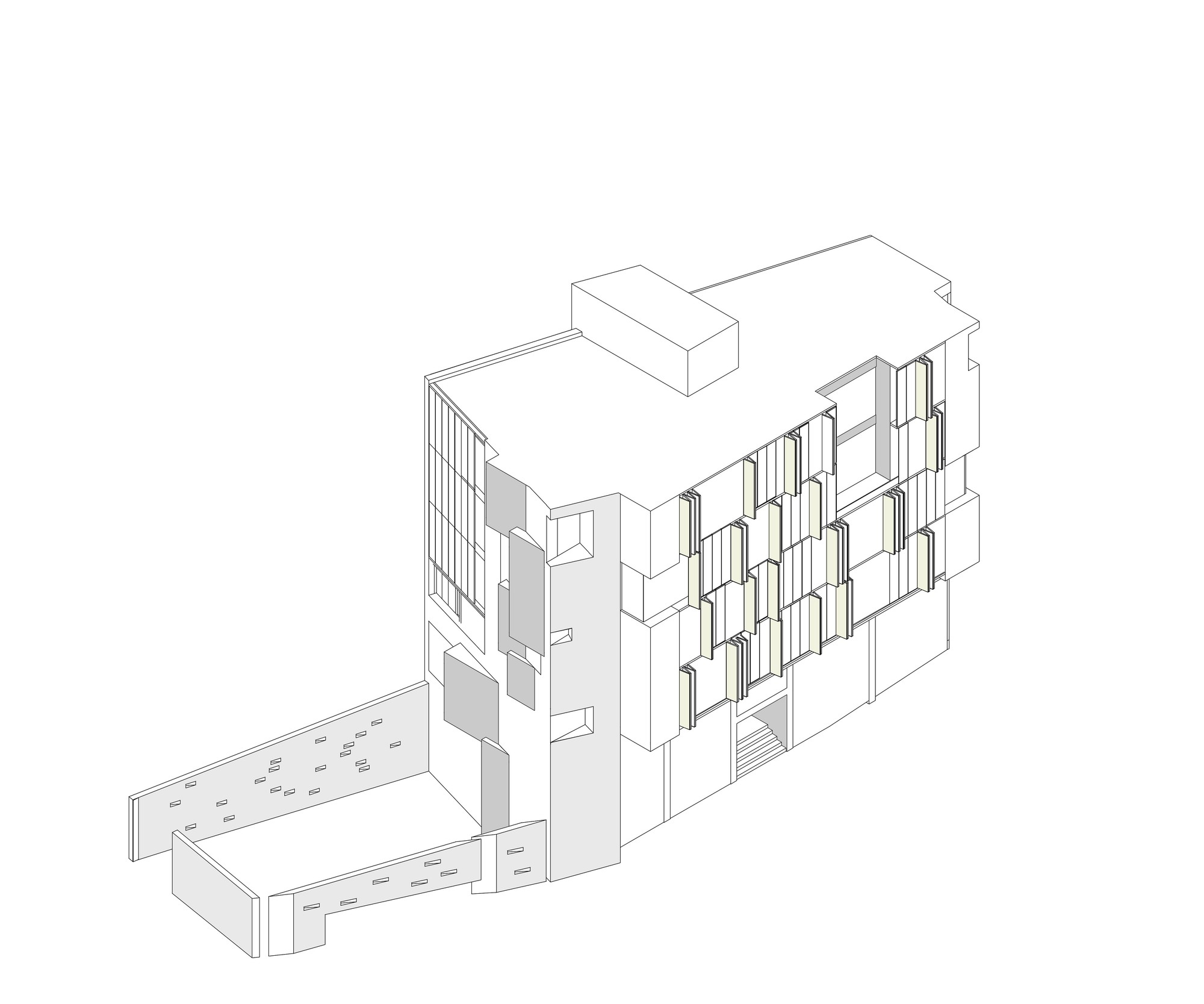 厚實的木百葉窗,扮演著調節器般的關鍵角色。在一年中最炙熱的時節,居民可以自由開闔,精準地控制進入室內的光線與熱度,達到節能的效果。另一方面,對於注重家庭隱私的社區文化而言,這種可調節的立面設計,提供了一層彈性的視覺屏障。它讓居住者能在保有私密性與擁抱外部世界之間,尋得一個恰如其分的平衡點,讓建築真正地為人的生活服務。