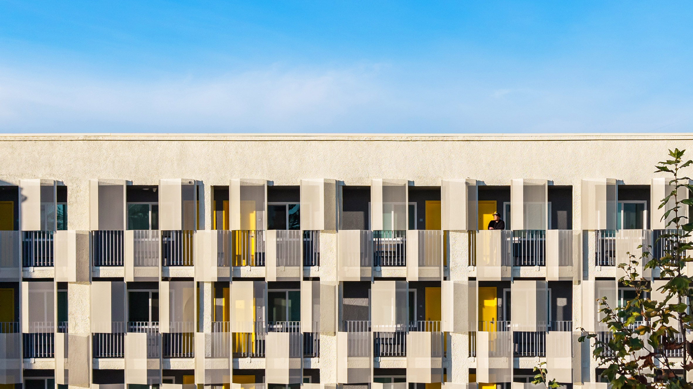 在洛杉磯東康普頓的轉角, 美國建築師事務所 Kadre Architects 正進行一場溫柔的空間革命。這座曾被遺忘的舊式汽車旅館,如今褪去陰暗外衣,換上奶油白與亮黃色的活力塗裝。建築師 Nerin Kadribegovic 透過色彩導引系統,將原本死板的建築邊界模糊化,透過增建而創造視覺層次,重新梳理基地紋理。鮮豔的黃色路徑不僅是動線導引,更是連結居住單元與希望的符號,讓人一目了然其對於社會弱勢的包容態度。