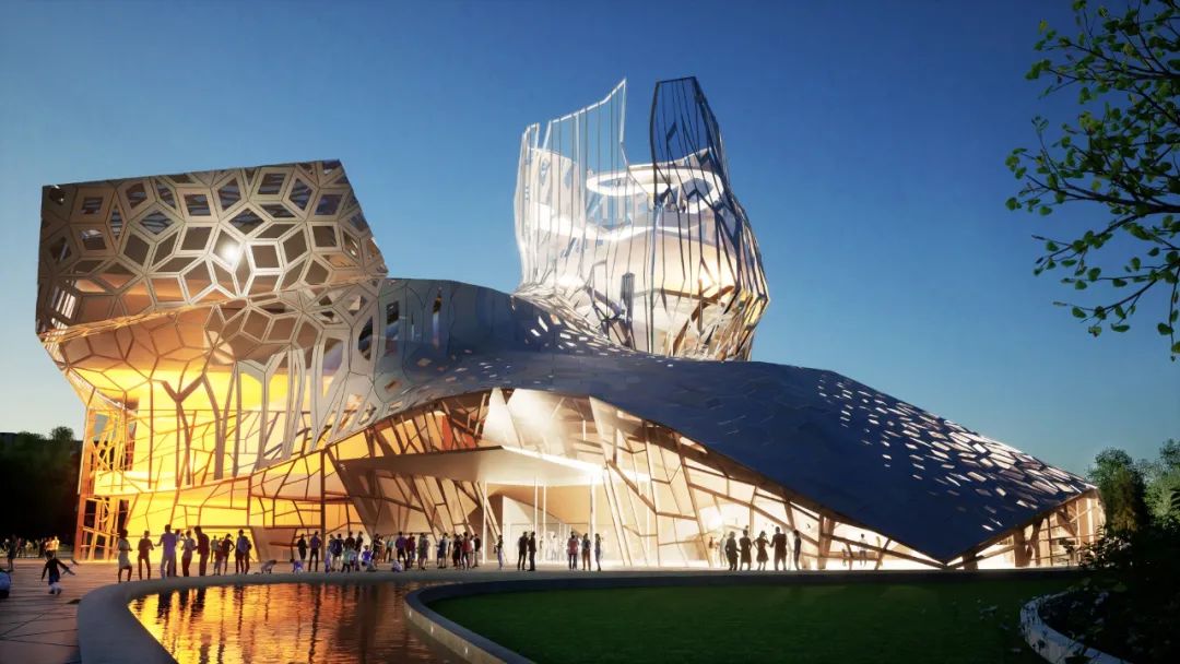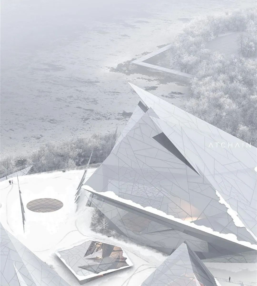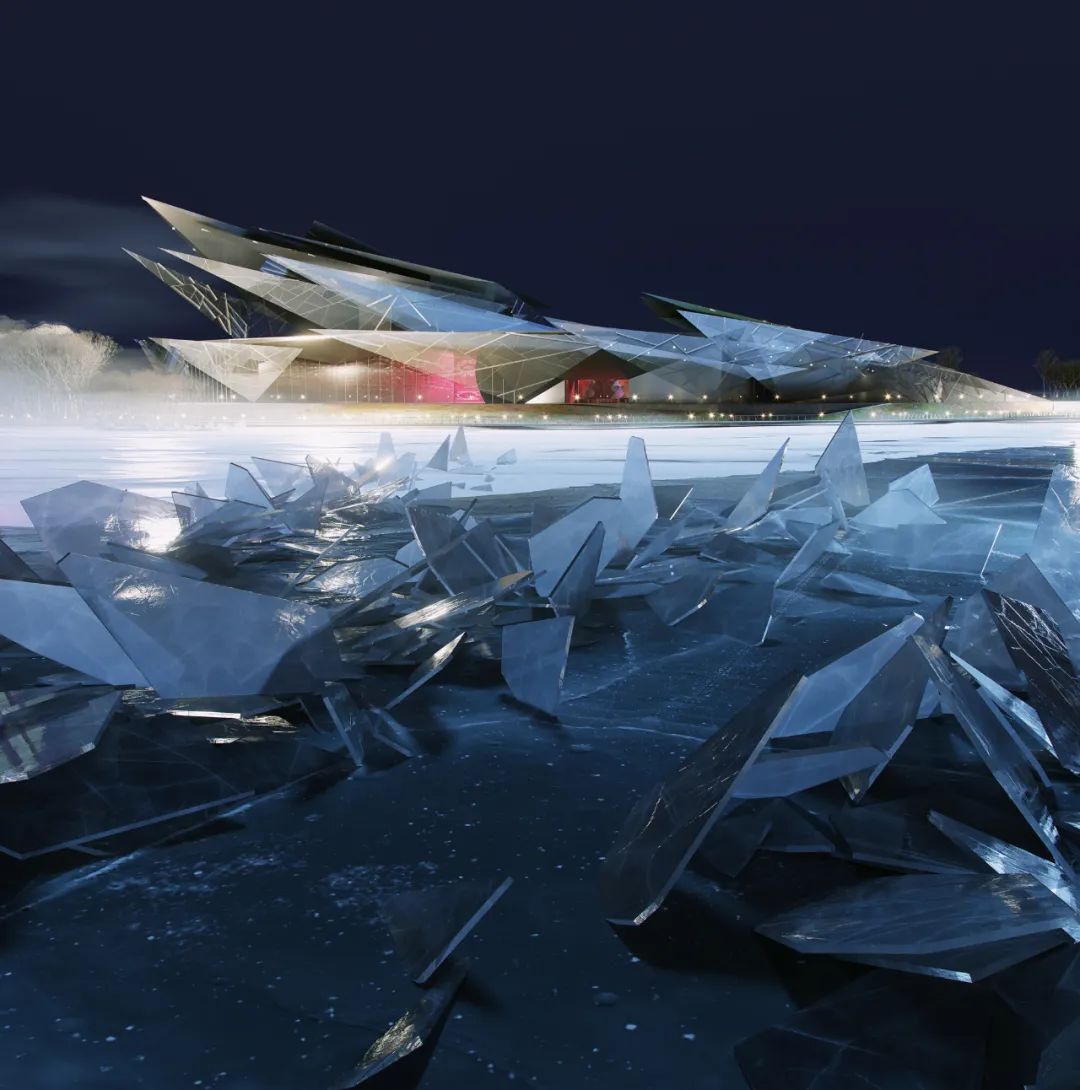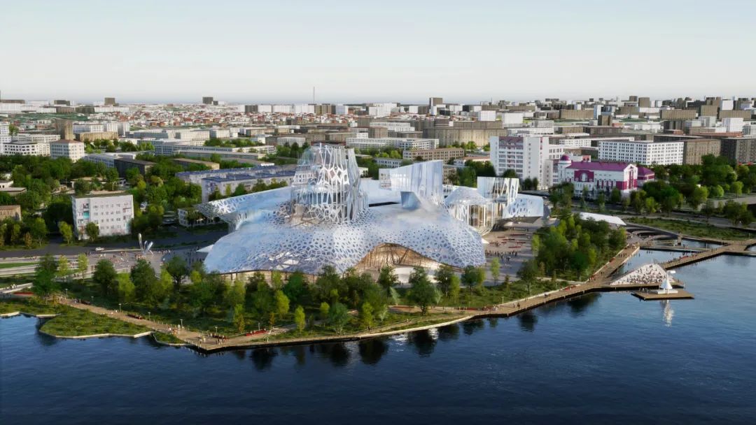 日本建築師事務所 Kengo Kuma & Associates 聯手 Werner Sobek AG、Wowhaus bureau 以及建築師 Bakulin German Alekseevich 的個人創意工作室,提出了一個充滿詩意且深具在地性的獲勝提案。設計團隊敏銳地觀察到卡班湖(Kaban Lake)上罕見的自然現象——「冰花」(Ice Flowers),並以此作為幾何造型的靈感來源。