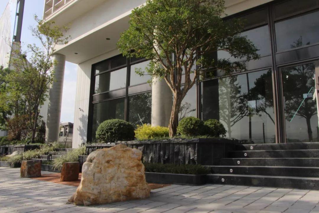 至於表面材料的選定:相較那些昂貴的建材,設計團隊比較傾向於表現真實情感的建材,如天然石材、鋼材、木材、斬假石、抿石子等應用。從室外景觀到大門電梯口再到室內所使用的材料表情,在陽光下呈現的材料質感、植物影射的狀態、應對街道的高程差……等等,這些都是設計團隊想要表現真實建築個性的方式。