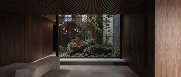 該團隊開始創建一個分層的環境,既可以看到內部,也可以看到外部,並注入有機元素。“通過一個迭代的設計過程,工作室和客戶達成了一個高度定製的、親生物的設計,與時間的流逝相協調。”團隊說。