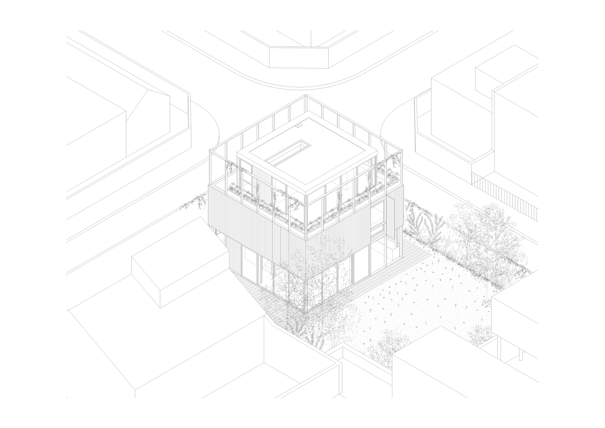 退縮隔牆迎來無死角的繁茂庭院