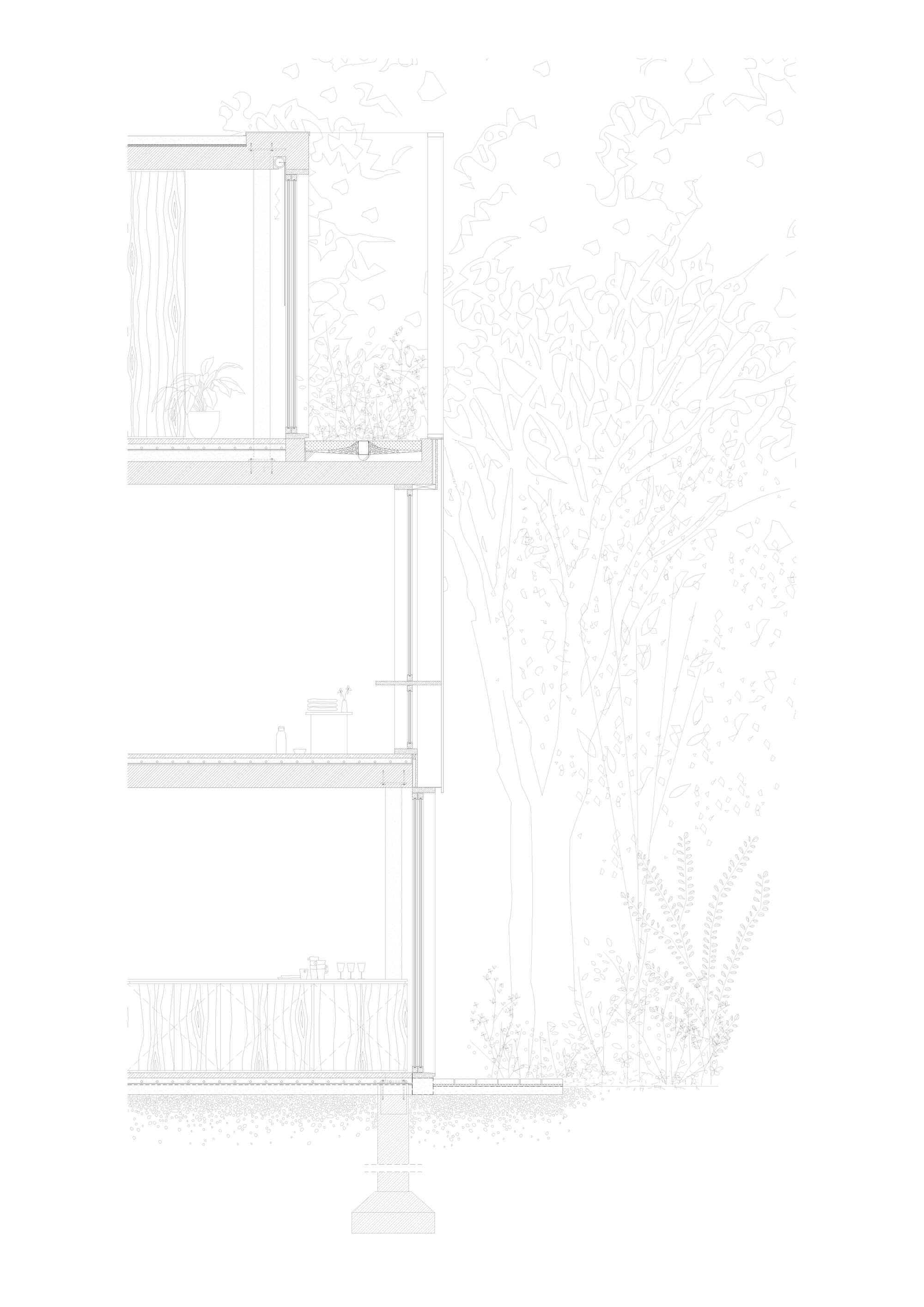 樹冠層與木造材質交織的隱密感