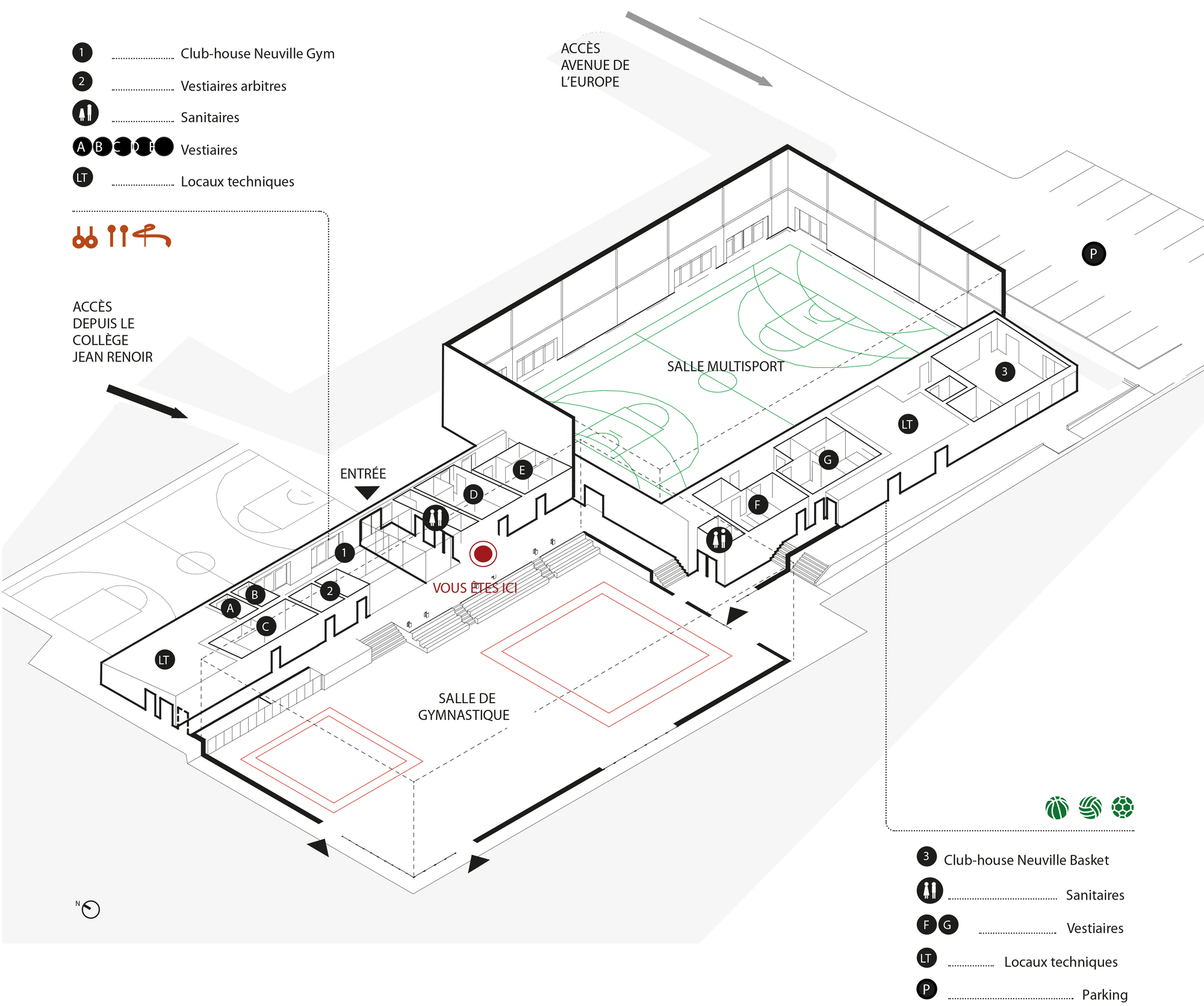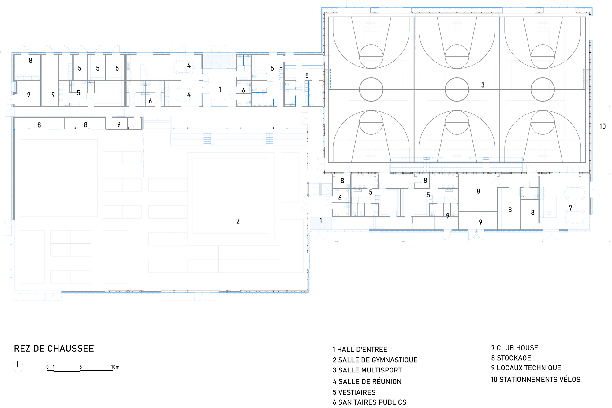 從都市更新的角度觀察,Marie Paradis 體育中心的改建案提供了極佳的範式。建築師並非單純進行修補,而是將建築物視為一項待開發的優質資源。透過適度的增建,將原本混亂的動線理順,並注入符合現代標準的運動設施