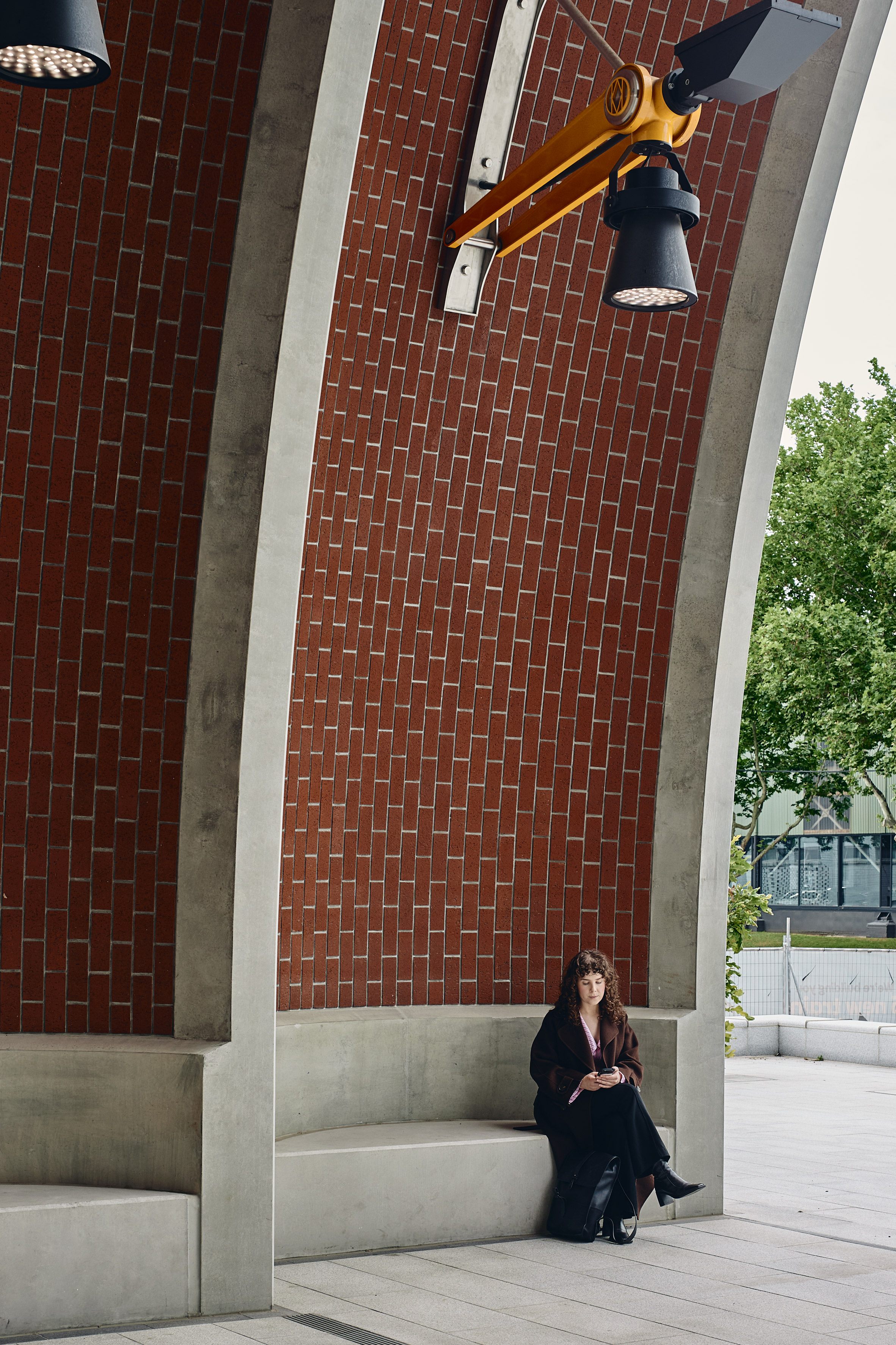 這五座車站雖系出同門,擁有共同的設計 DNA,卻因應各自所在的城市區位(Location)而發展出截然不同的面貌,體現了「因地制宜」的設計智慧。位於北墨爾本工業更新區的 Arden Station,以巨大的紅磚拱門作為入口意象,不僅回應了當地的工業遺產,更奠定了該區未來轉型為創新走廊的基調。座落於醫療與學術重鎮的 Parkville Station,則採用通透的玻璃結構覆蓋斜屋頂,將路樹與陽光納入視野,營造出寧靜的學院氛圍。