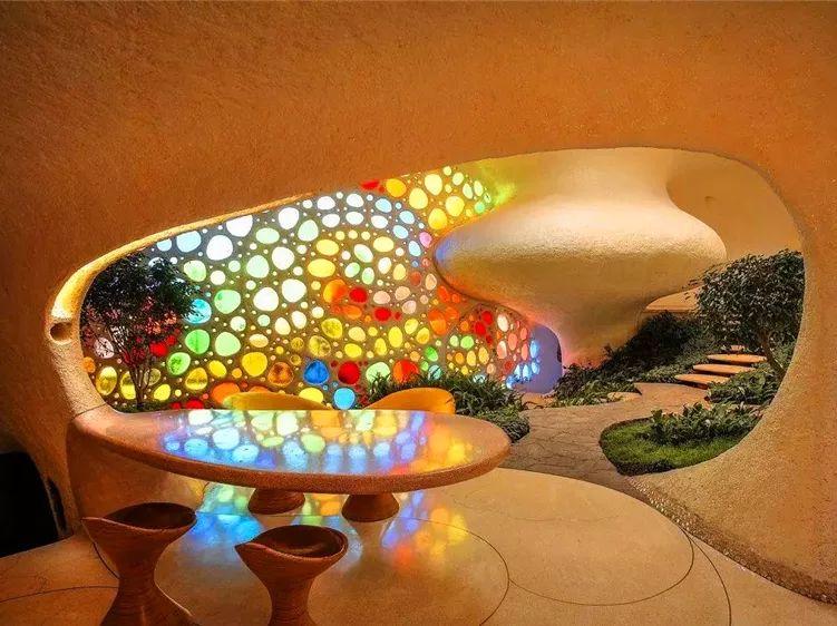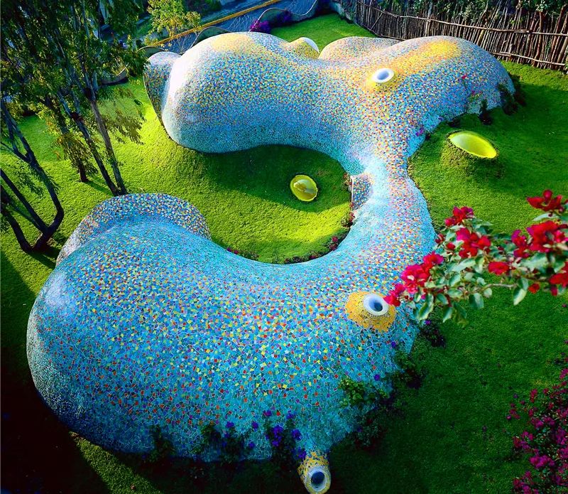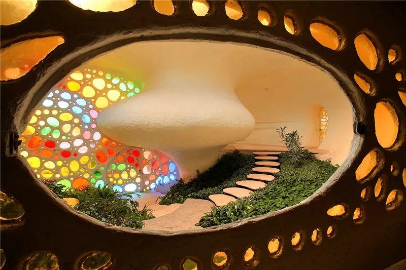 如果說,Javier Senosiain 的建築裡那些自然特性同源於有機建築之父 Frank Lloyd Wright的話,那他建築裡運用的迷人彩色瓷磚與玻璃則有幾分安東尼奧‧高迪的意味了。