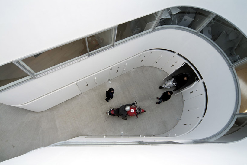 日本重機騎士人口眾多,由於住宅停車不方便,Nakae Architects 建築師事務所設計了重型機車愛好者專屬的公寓,每戶都擁有超寬敞的機車車庫,是相當現代感的住宅空間設計。