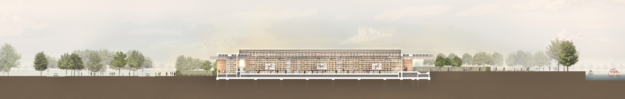 最關鍵的是,新建的坡道將博物館與運河旁的拖船道(towpath)連接起來,為步行者創造一條靜謐的通道直達市中心。四平八穩的園林佈局,不僅為參觀者提供了休憩場所,也將博物館納入城市慢行系統,使其成為納博訥文化與休閒網絡上的核心節點。