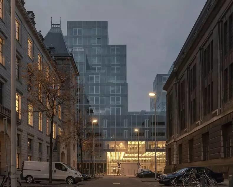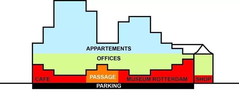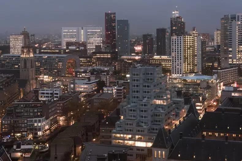 Timmerhuis位於荷蘭鹿特丹,是一棟集政府服務、辦公室和居住公寓於一體的綜合性建築。模組化的建築量體沿街道立面向內生長,逐漸堆壘出兩個不規則的「頂峰」。這座由小塊量體組合而成的建築層次豐富,給來往的人們留下深刻的印象。同時,碎片化的量體也讓建築與繞其東側、建於1953年的Stadstimmerhuis間的交接更為流暢和自然。