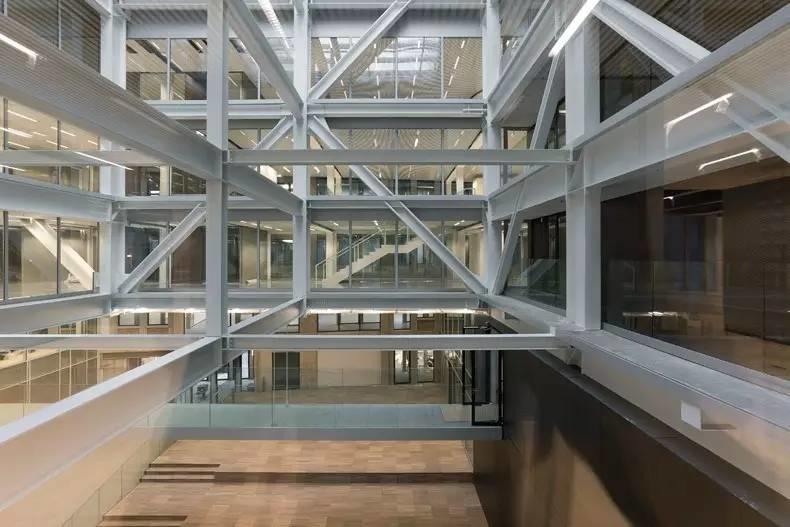 建築內部與中庭相連的智能氣候系統將不同季節的冷熱能量轉化儲存,在需要時向室內空間釋放,兩個巨大的中庭如同生物的「肺」一般,為室內提供源源不絕的空氣和能量。而建築立面上利用高科技的透明隔熱技術的三層玻璃幕牆則讓節能效率達到了史無前例的峰值。OMA將建築設計與最新節能科技相結合,Timmerhuis正如業主所希望般,成為了荷蘭本土最具可持續性的建築。