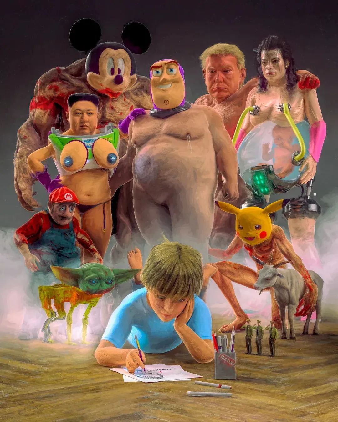 Beeple的作品具有一種魯莽、直截了當地的吸引力,就像一幅以反烏托邦電子遊戲為背景的政治卡通速寫。由於溫克爾曼每天只畫一幅畫,他的作品經常重複新聞中正在發生的事情,迅速將網路文化轉化為視覺評論。這種風格可以說是一群精通「梗」文化的投機者的母語,他們中的許多人都從科技和加密貨幣投資中賺了大錢。