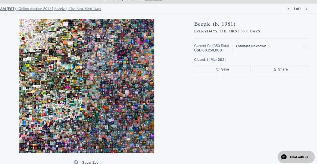 最終,經過353次激烈競爭,數位最終定格在6025萬美元,加佣金6934.6萬美元(4.49億元!),時隔不到兩週再度刷新了NFT藝術品的價格紀錄。而此一價格也已經超越了絕大多數當代藝術家!