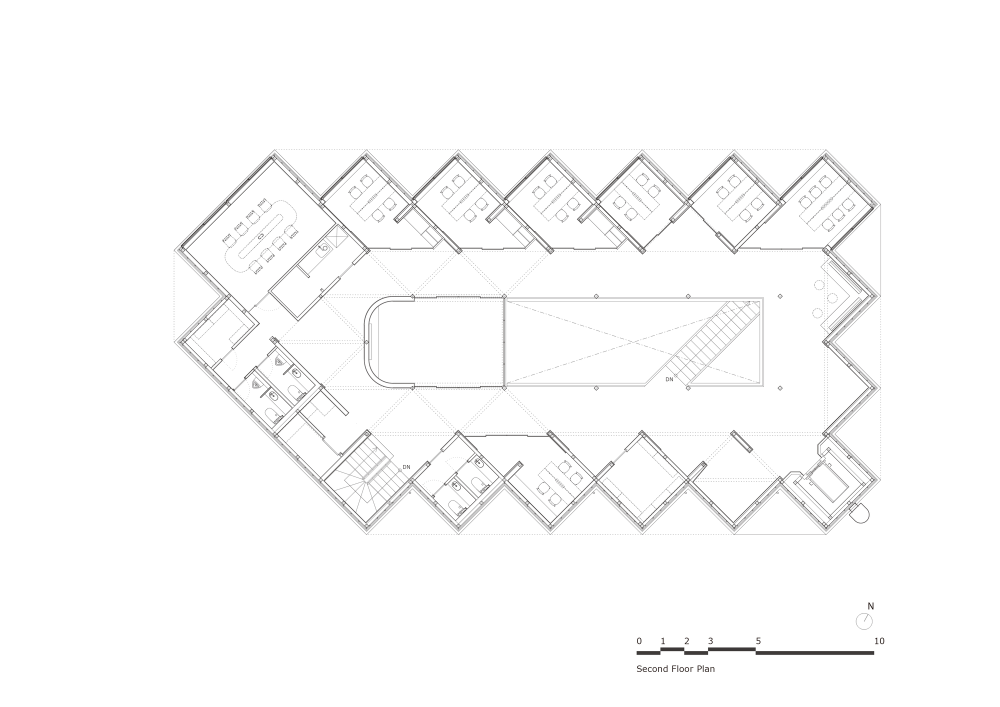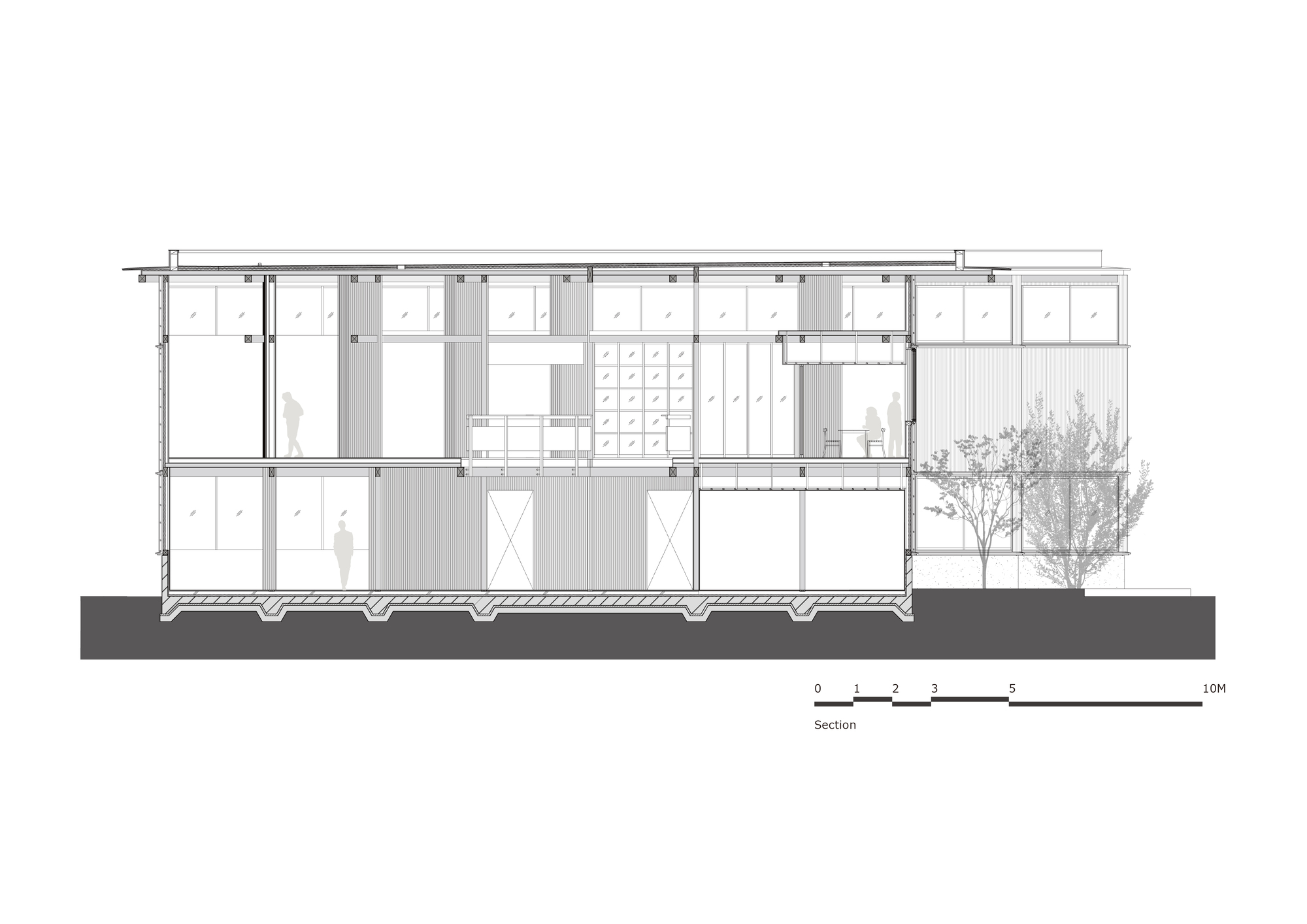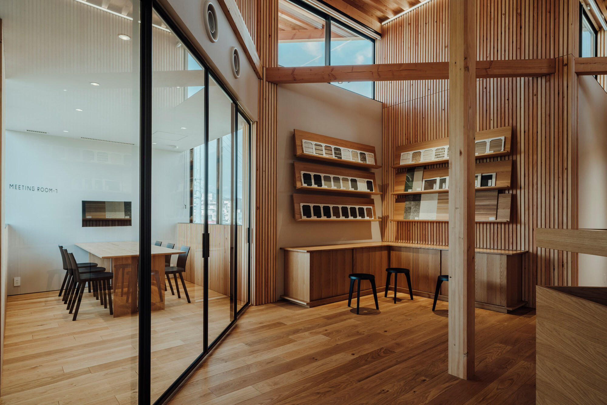 辦公室的業主 NIKKO HOME 是一家深耕日本木造住宅文化的營造公司。一開始,圖紙原本規劃使用鋼筋混凝土與鋼構,並在一樓設置挑空柱列以增加停車位。