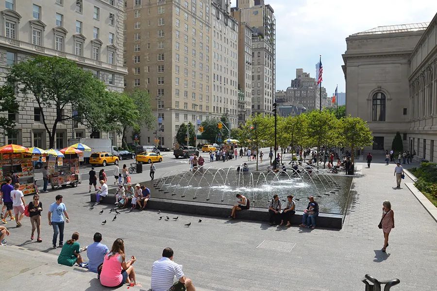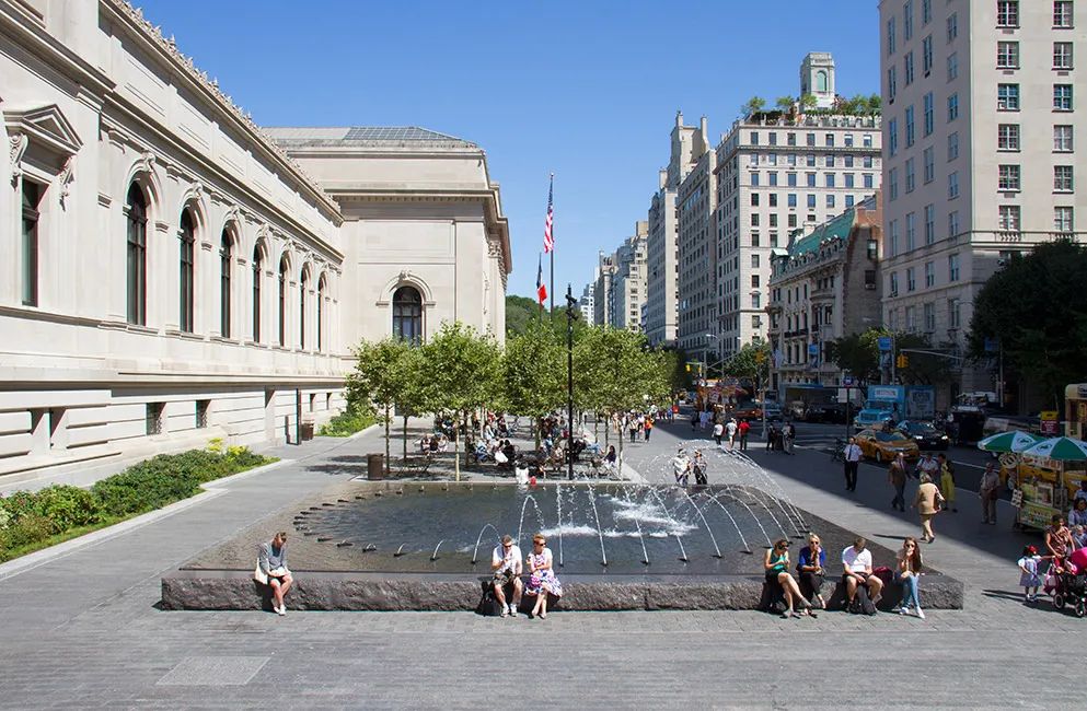 對於城市公共空間的設計,OLIN總是會優先考慮人們的步行體驗感受,這次是沿著第五大道的地標性立面,結合噴泉、樹木、座位、茶歇和博物館資訊亭,為大都會美術館設計了四個街區長的廣場,創建了一個大受歡迎的城市目的地。
