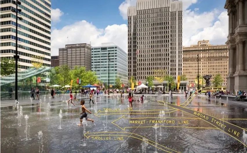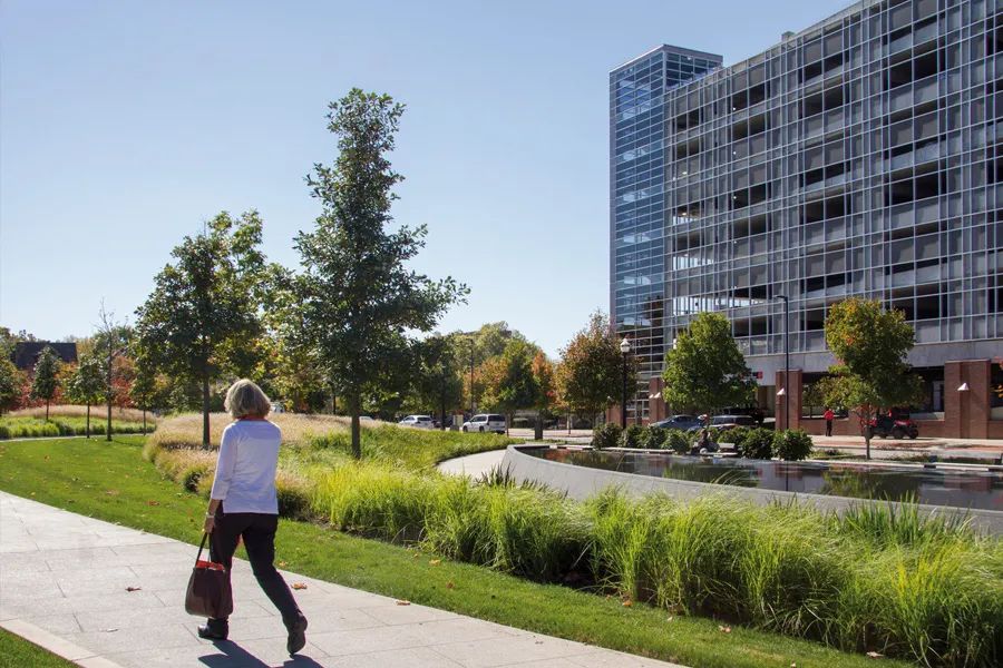 該公園獲得了2020年ASLA城市設計類傑出獎。位於市政廳腳下、作為交通中心樞紐的迪爾沃斯公園(Dilworth Park),經改造後儼然成為了市中心的代表性目的地。OLIN採取拆除樓梯和牆壁消除高差,使廣場與街道齊平,提升其可達性,形成與市政廳主體位置相稱的現代公共空間。其作為框架的兩個優雅玻璃亭,同時形成藝術雕塑般的入口,滿足下面車站的採光。