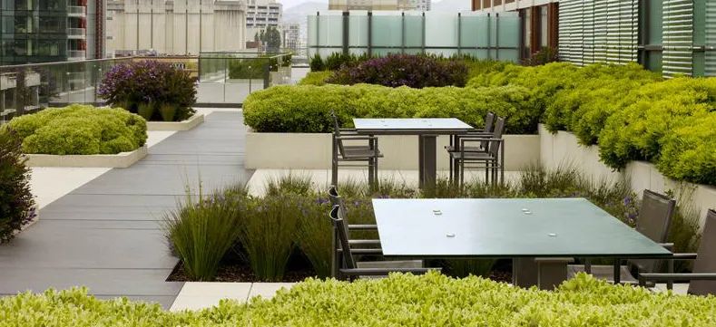 屋頂花園也像我們常規的設計一樣,在空間上劃分成了五個不同的小氣候,植栽的色調搭配與之相呼應,每個區域種植分別在概念上代表了不同的區域,而且搭配了豐富的植栽品種,確保了從春天到秋天的觀賞花期,提供四季美景和趣味。