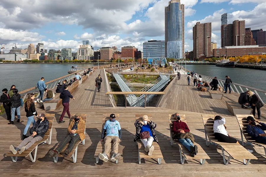 碼頭所處的位置正是哈德遜河河口,常有淡水徑流和海洋鹽水在此匯合,是一個高度敏感和生態生產水體。因此,景觀充分考慮了河流生態性,採取盡量不干擾河流系統的措施。