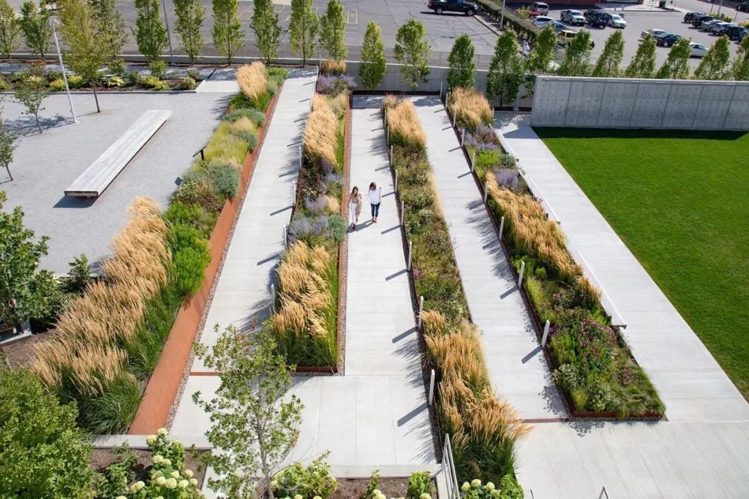 該作品也是OLIN具有代表性意義的作品之一,其根據車流以同心圓為概念的設計,將曾經不太友好的交通環島改造成了休閒庇護處,展示出了交通基礎設施同樣具有開發成為社交空間的潛力。