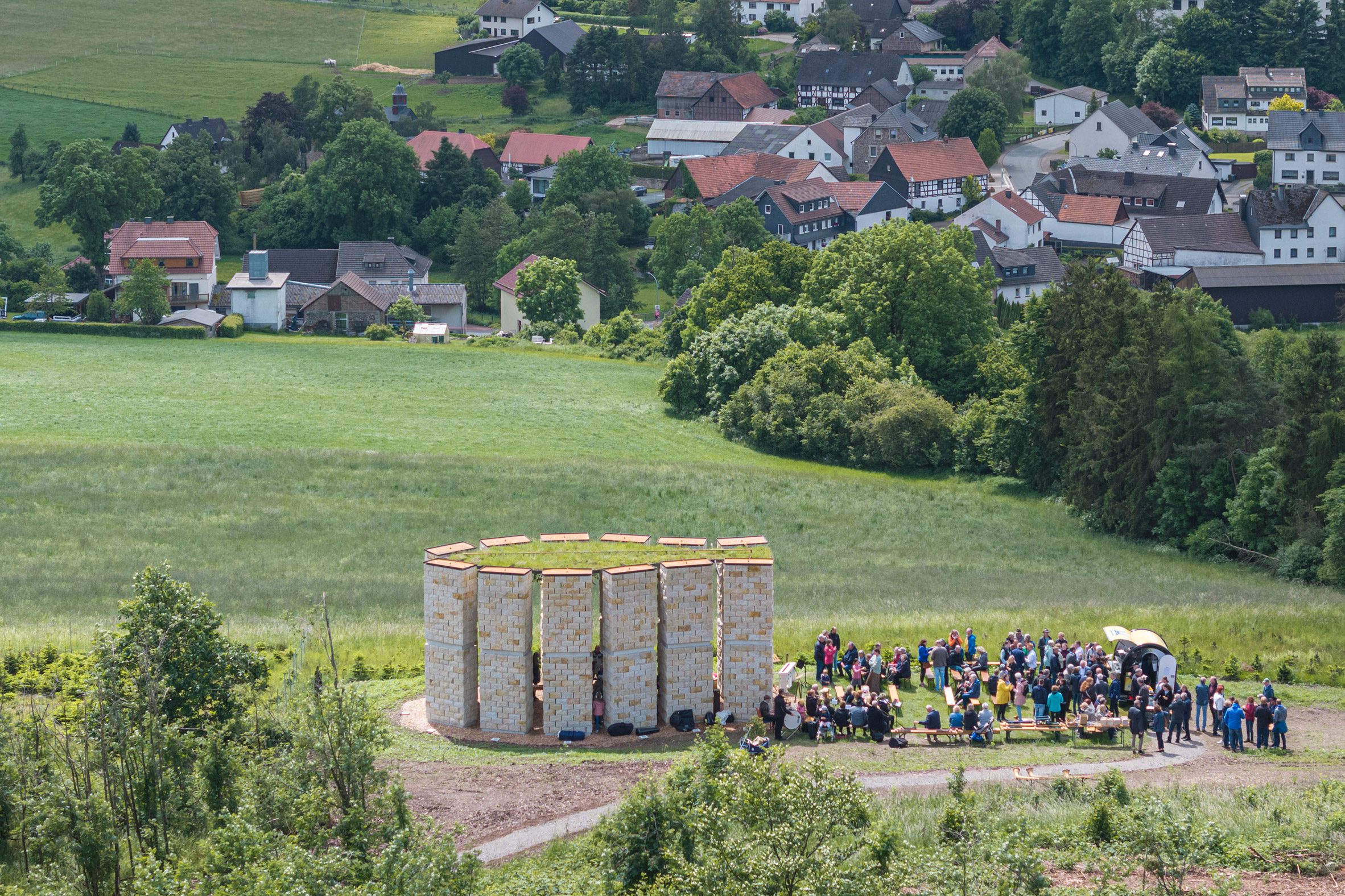 克里斯托弗·赫塞建築事務所(Christopher Hesse Architects)在德國中部的黑森邦(Hesse, Germany)設計了一座由十二根砂岩柱環繞而成的開放式教堂,這些砂岩柱依照杏仁外型(mandorla)排列,創造出「既有遮蔽感又保持開放性」的獨特空間。