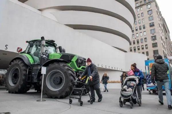 紐約古根漢美術館門外的拖拉機,由OMA籌劃的「鄉村,未來 Countryside, The Future」展覽現場