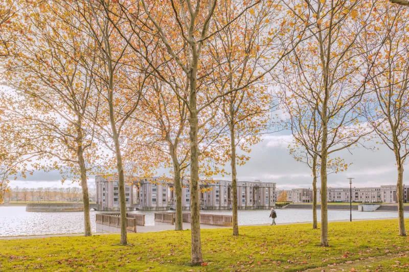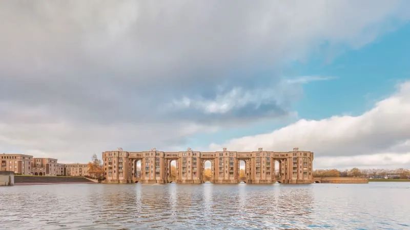 據說設計靈感來自阿維尼翁橋、舍農索城堡和塞戈維亞渡槽,以巨大的人工湖,以及整齊的住宅區,向法國傳統建築的優雅緻敬。這種莊嚴又舒適的建築格局,令人無論從任何角度看,都能感受到浪漫和詩意的氣息。